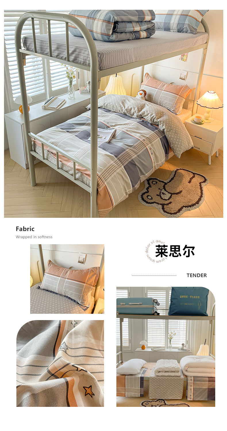 当前位置: 91家纺网 > 商品网购 > 床品套件 > 三件套 > 慕木家纺 2025新款12868全棉印花学生上下铺三件套大礼包系列 莱思儿-红