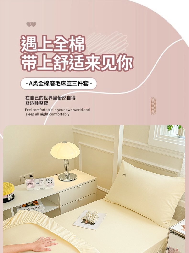 • 91家纺网 家纺一手货源 找家纺 眠博士 2025新款纯色全棉纯棉磨毛学生床床笠单品床笠床笠单件 磨毛床笠-陶瓷奶白