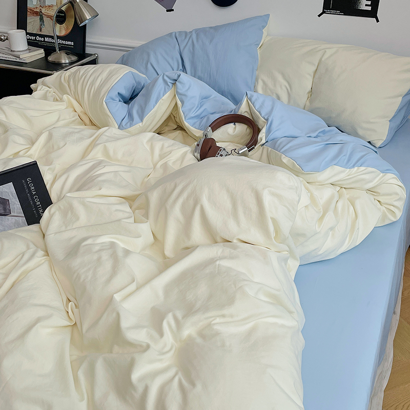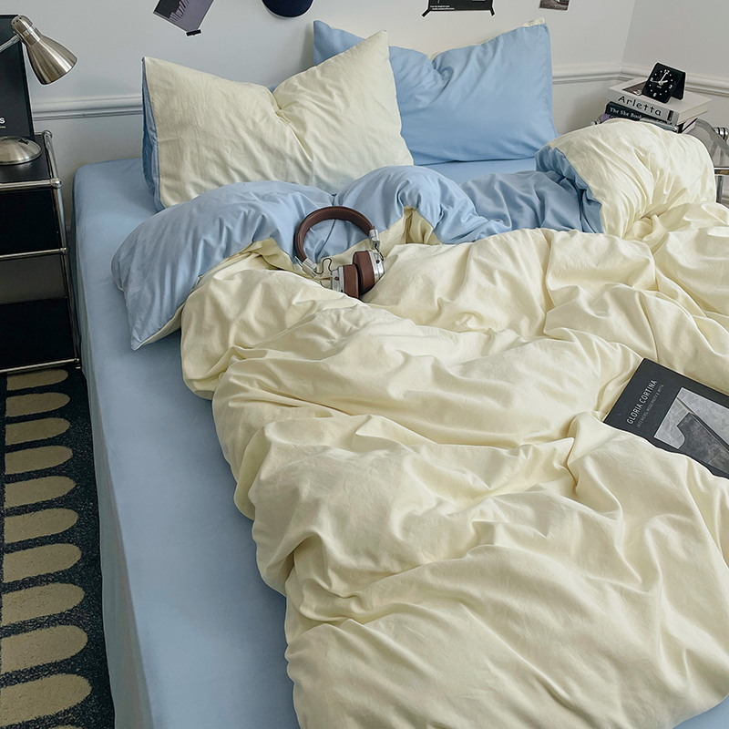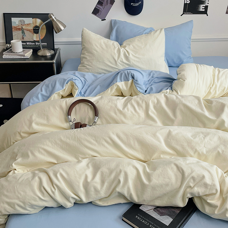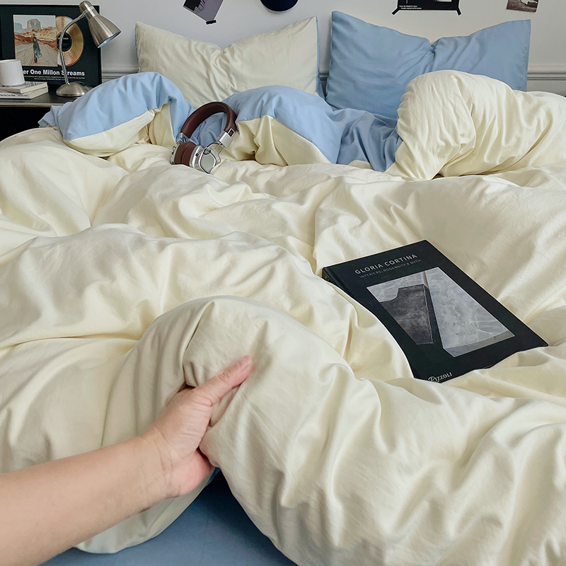 当前位置: 91家纺网 > 商品网购 > 床品套件 > 四件套 > 水洗棉四件套 > 梦卓家纺 2025爆款ins风超柔褶皱亲肤磨毛水洗棉四件套 天蓝椰冰