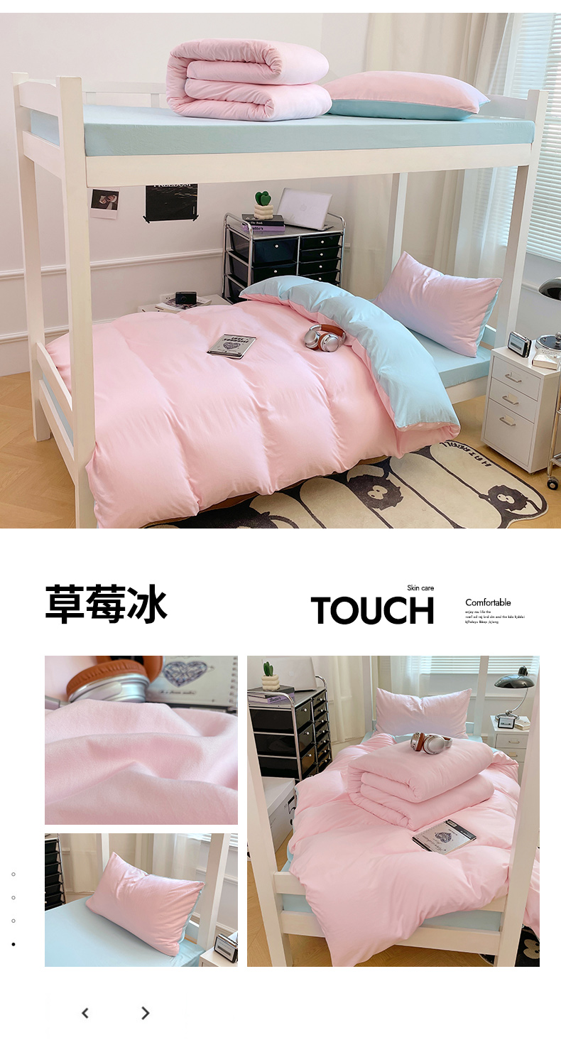当前位置: 91家纺网 > 商品网购 > 床品套件 > 四件套 > 水洗棉四件套 > 梦卓家纺 2025新款学生宿舍上下铺纯色水洗棉三件套 草莓冰