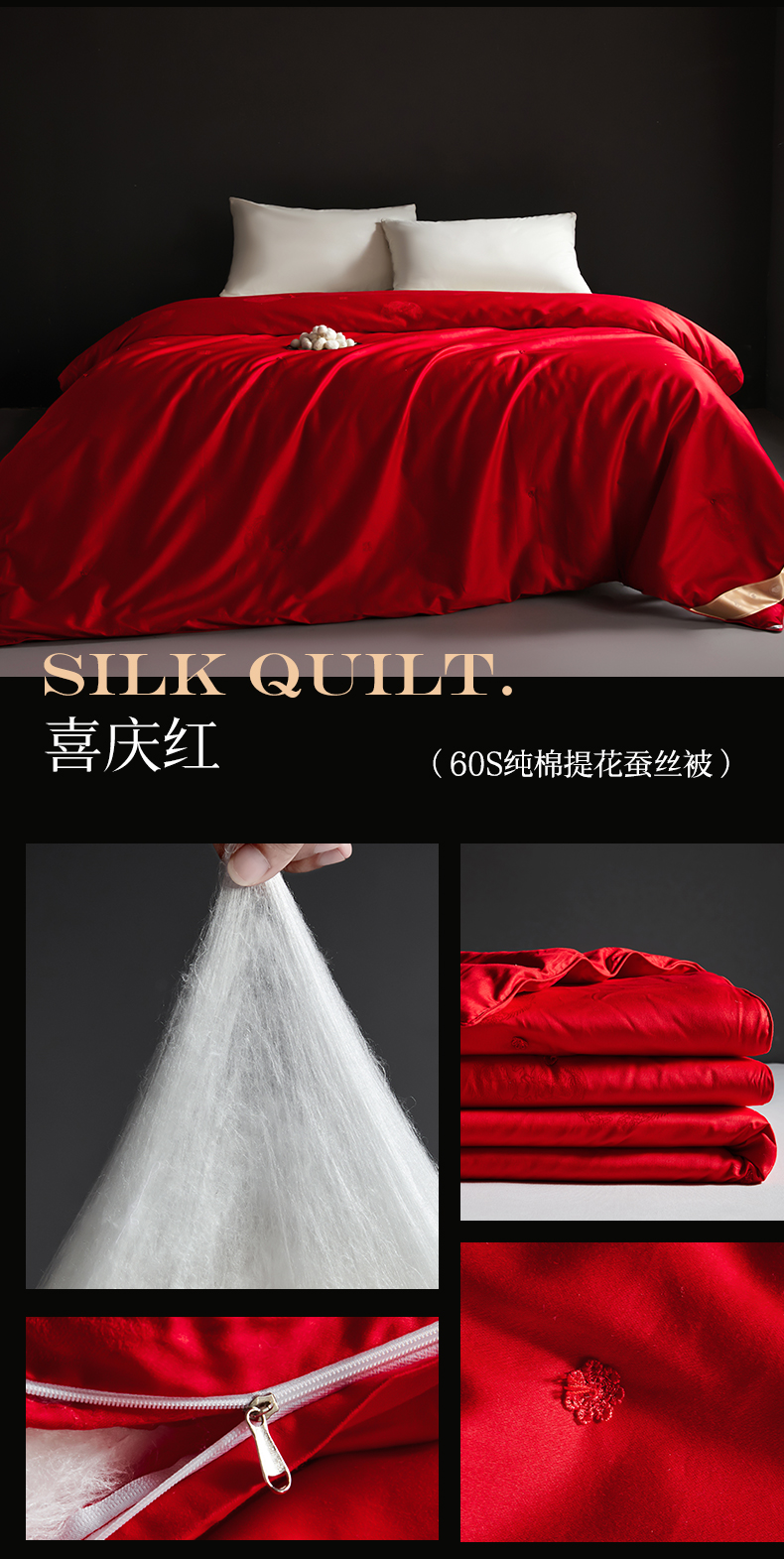 商品名称:(总)金同成 2025新款婚庆被冬被子母被春秋被四季被60支全棉龙凤喜字提花蚕丝被