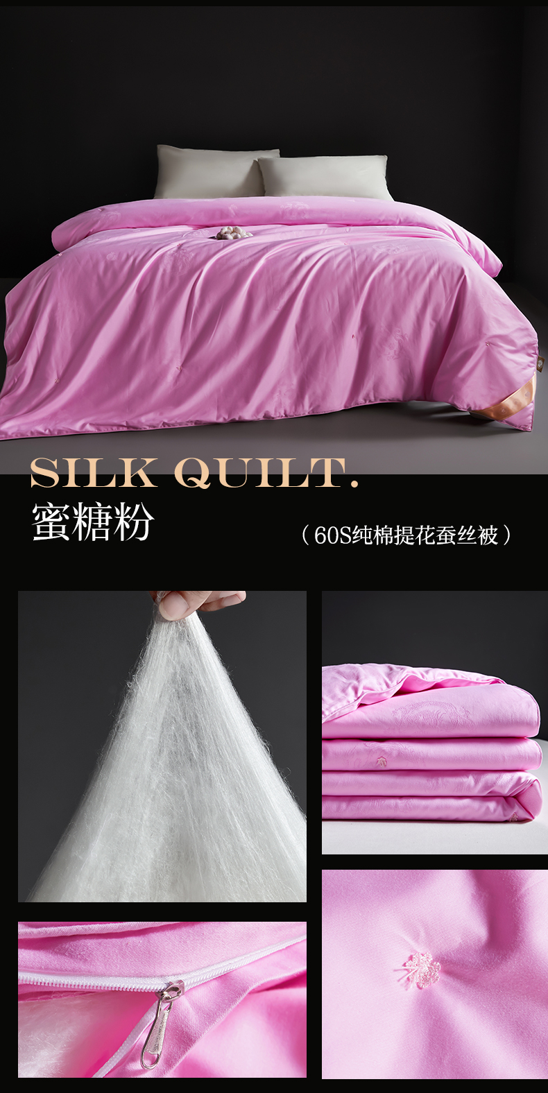 金同成家纺 2025新款纯棉金提花被夏凉被春秋冬季蚕丝被被子被芯 粉色,粉色