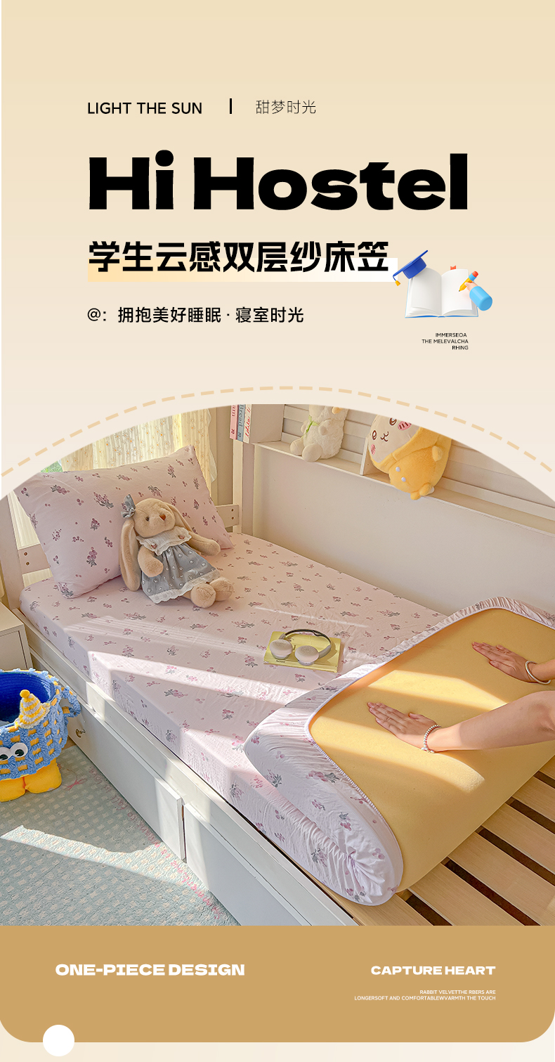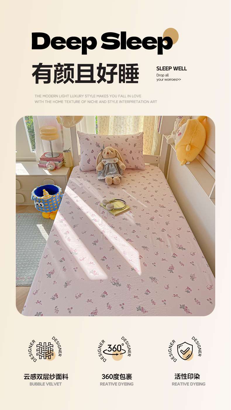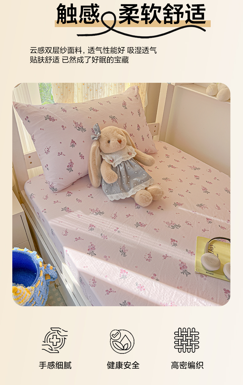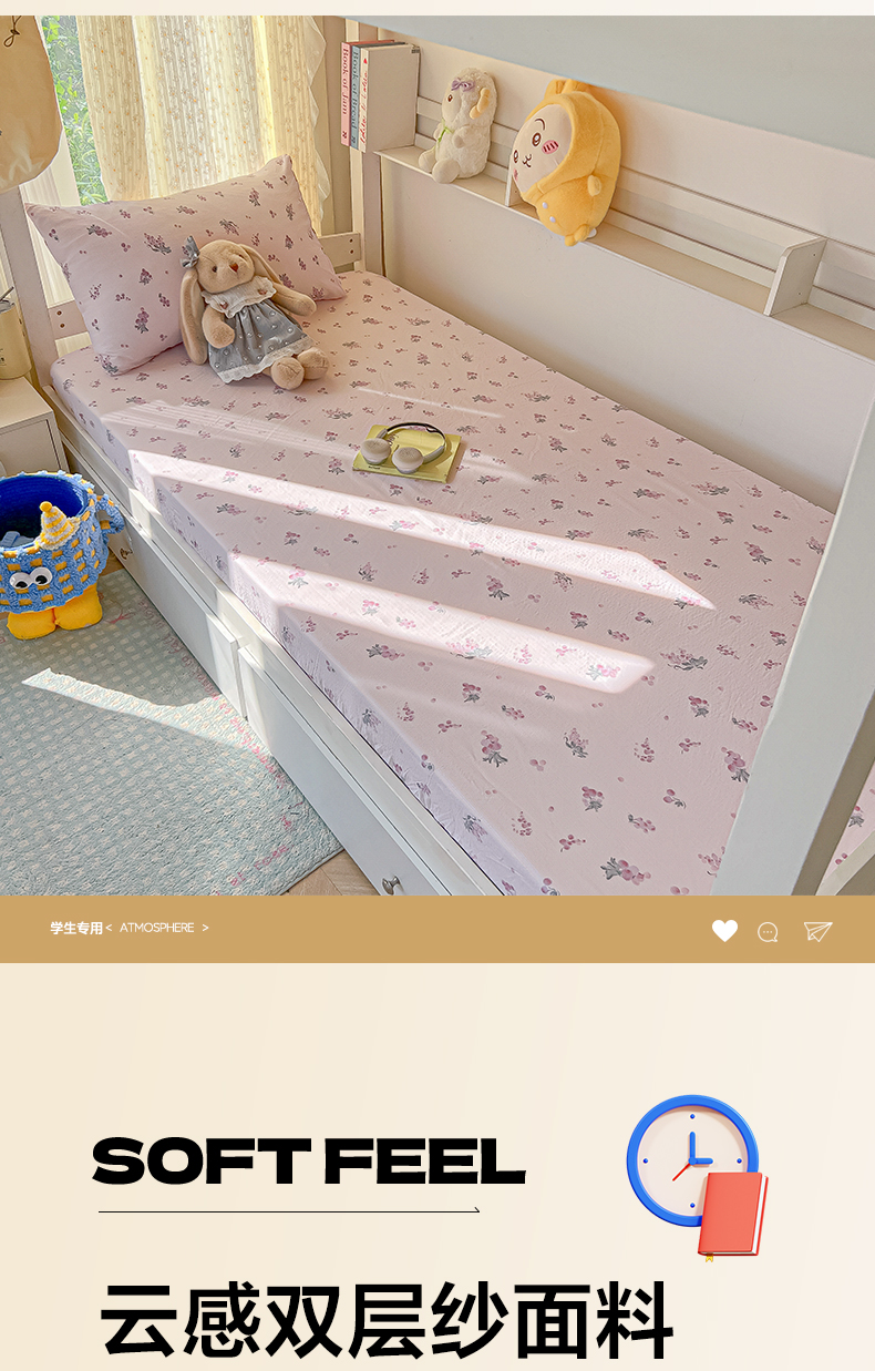 • 91家纺网 家纺一手货源 找家纺 韩巢家纺 2025新款双层纱学生宿舍寝室床笠单件单床笠上下铺防滑床单床垫套 葡萄七分甜