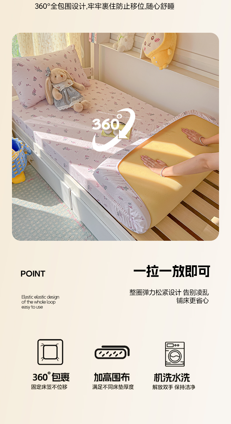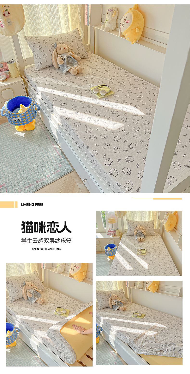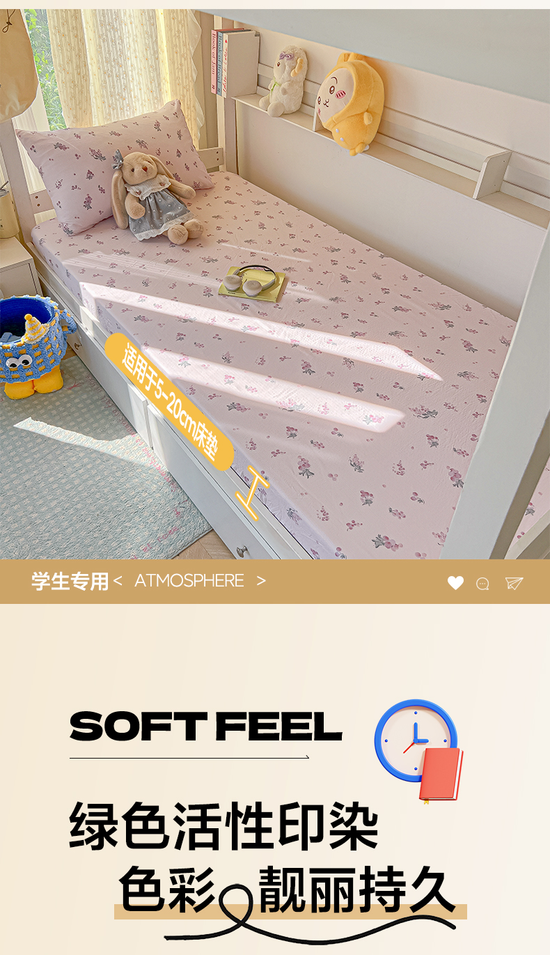 • 91家纺网 家纺一手货源 找家纺 韩巢家纺 2025新款双层纱学生宿舍寝室床笠单件单床笠上下铺防滑床单床垫套 葡萄七分甜