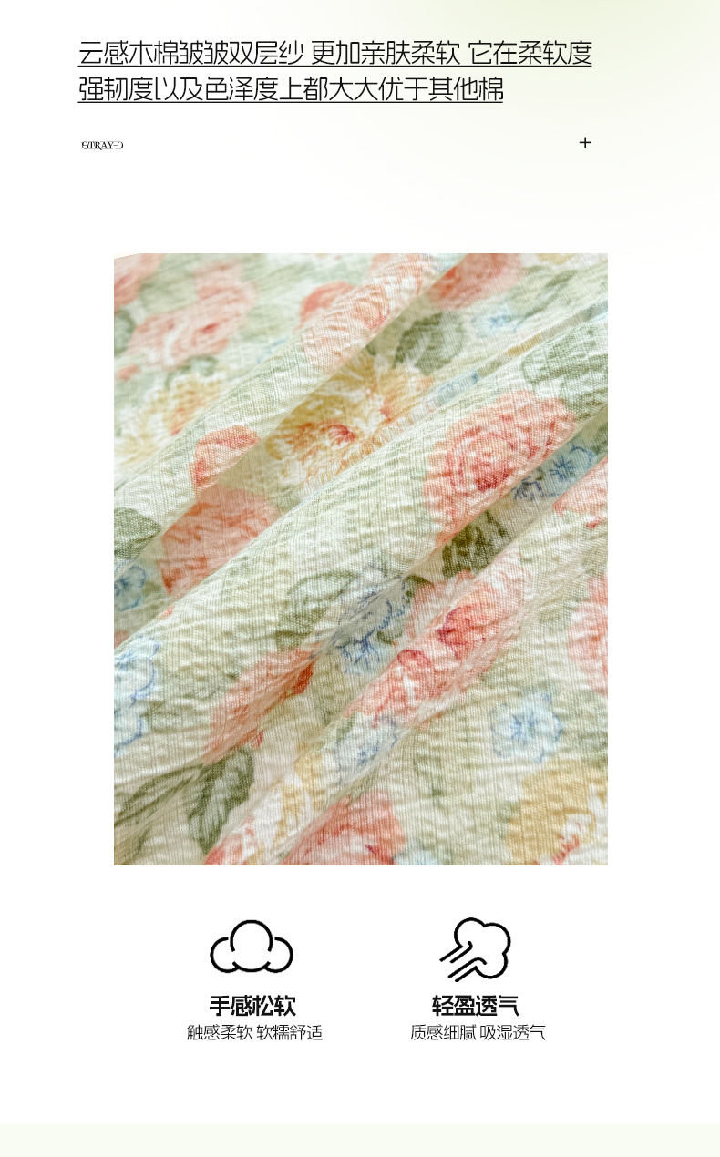 (总)麦田家纺 2025新款A类云感木棉皱皱双层纱印花四件套,春意浓,繁花,花颜,简意,开心小熊,腊肠犬,浪漫花语,免挽星辰,甜心格,小蓝町,樱桃格,紫韵