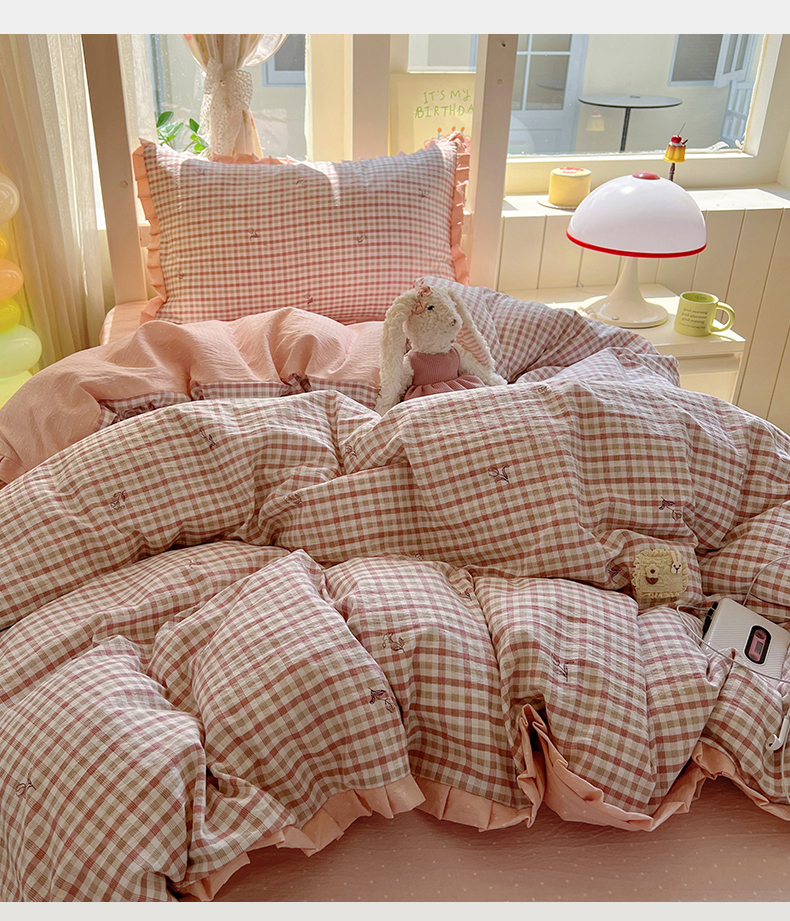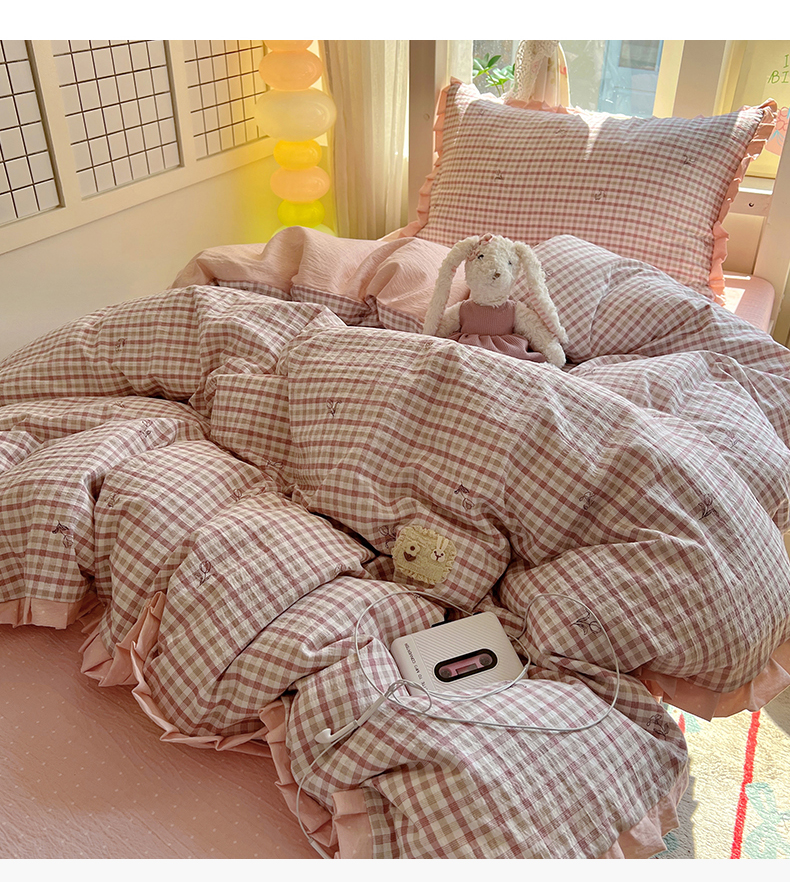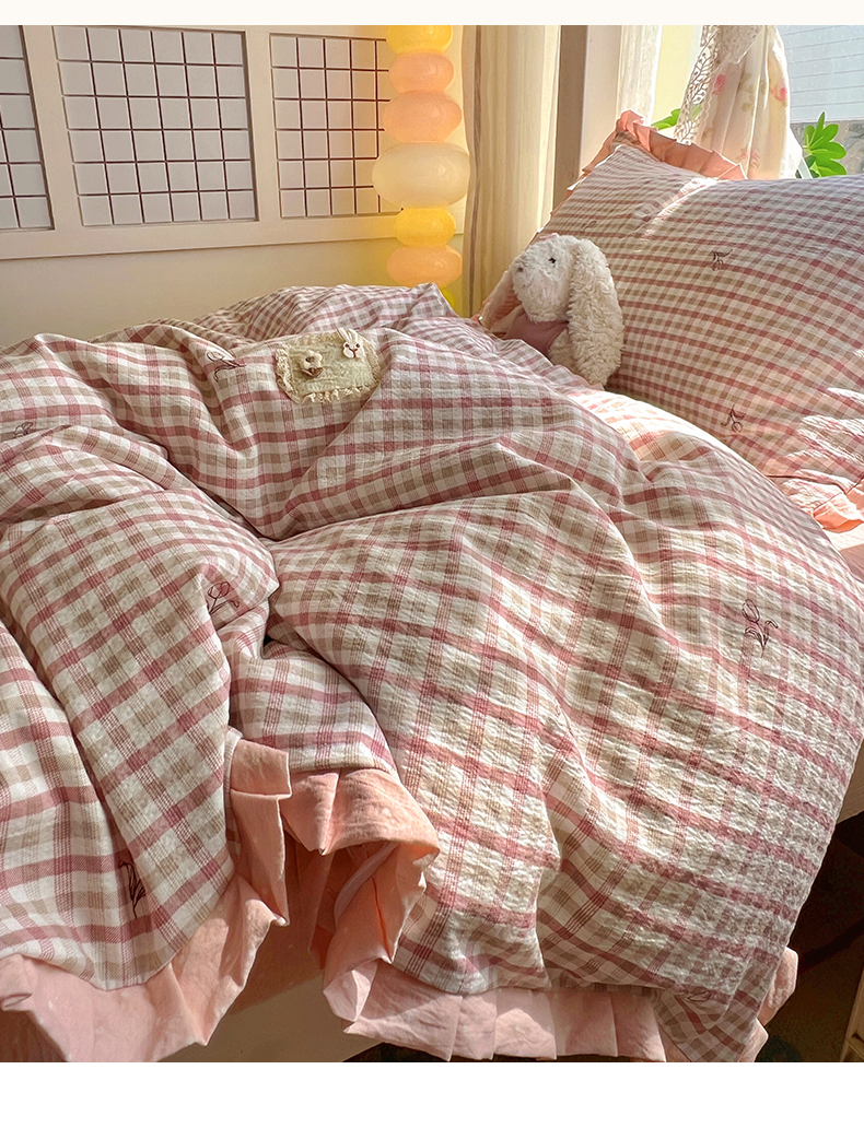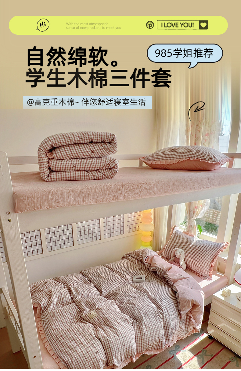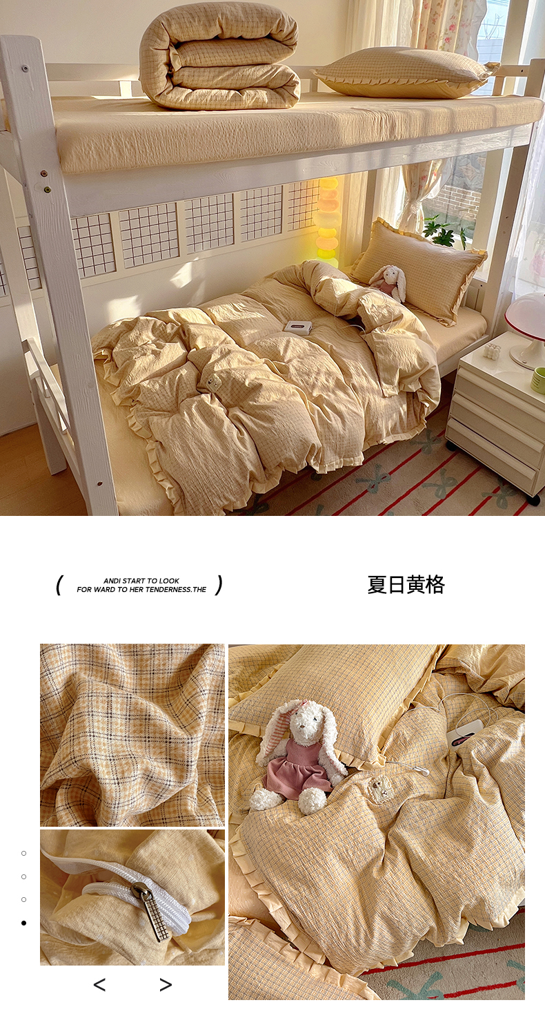 当前位置: 91家纺网 > 商品网购 > 床品套件 > 三件套 > 春光里 2025新款高克重皱皱纱学生床三件套 红茶格
