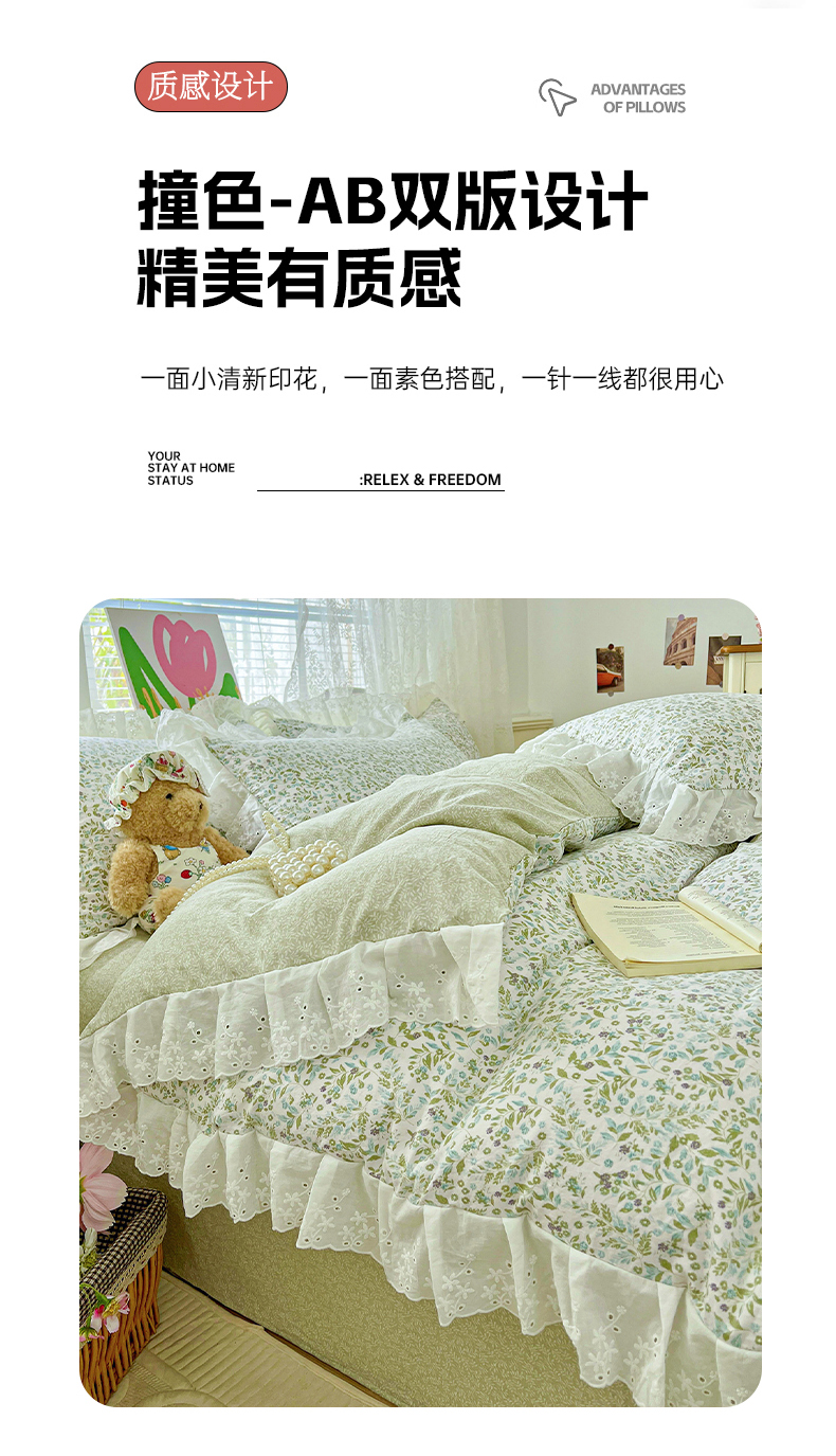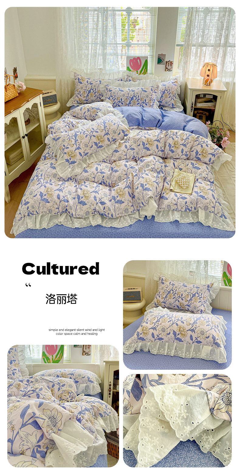 商品名称:赛丽雅 2025新款花边韩版水洗珍珠棉四件套 梵克-灰