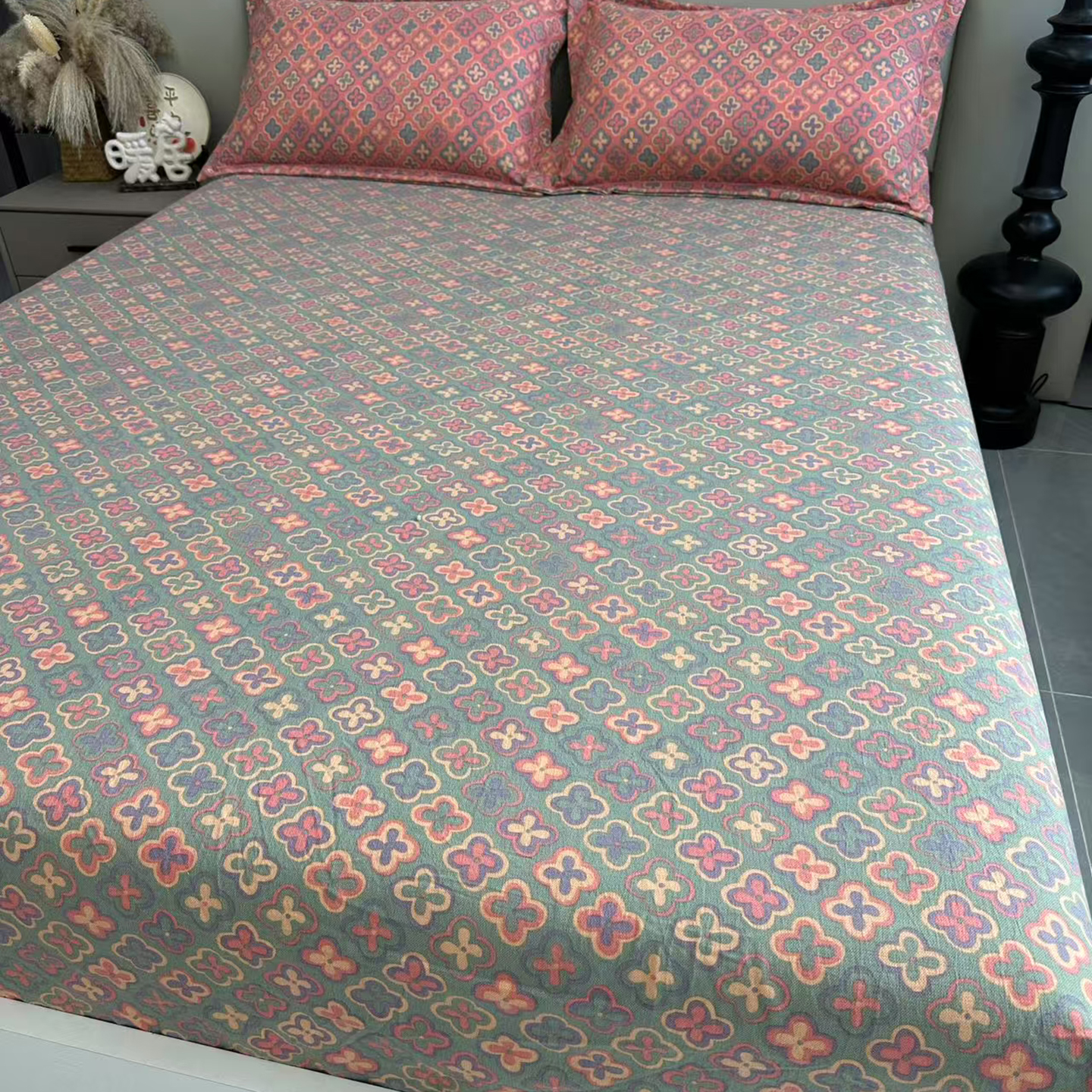 禧多家纺 2025新款双层纱床笠三件套 金瓜纳福