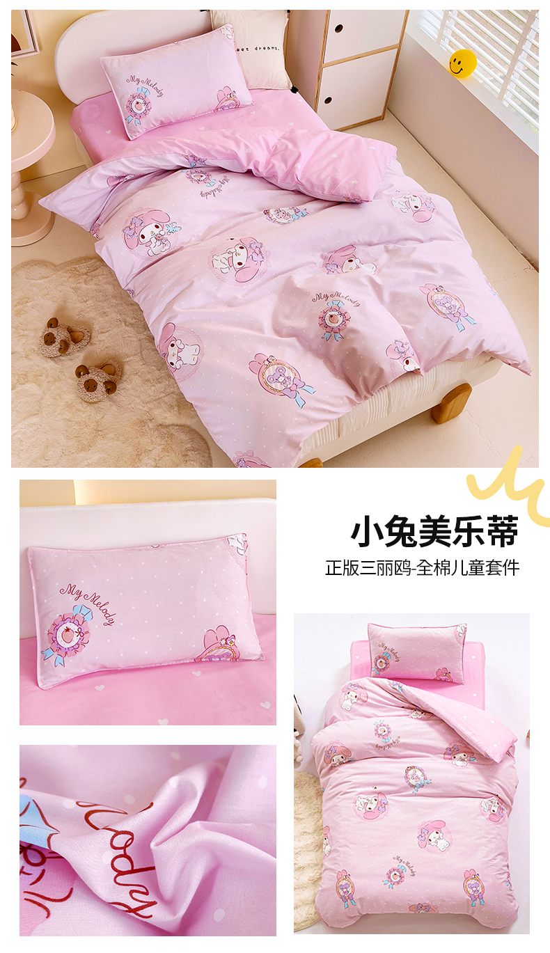 当前位置: 91家纺网 > 商品网购 > 床品套件 > 三件套 > 吉咪兔 2025新款正版三丽鸥库洛米美乐蒂幼儿园被子三件套纯棉被褥六件套午睡小兔美乐蒂