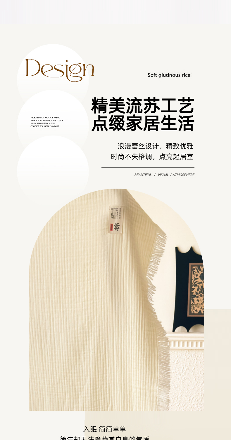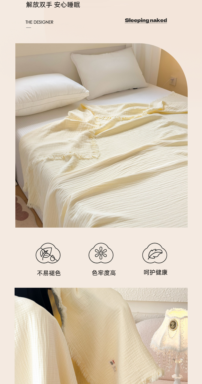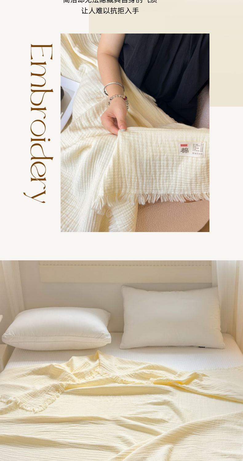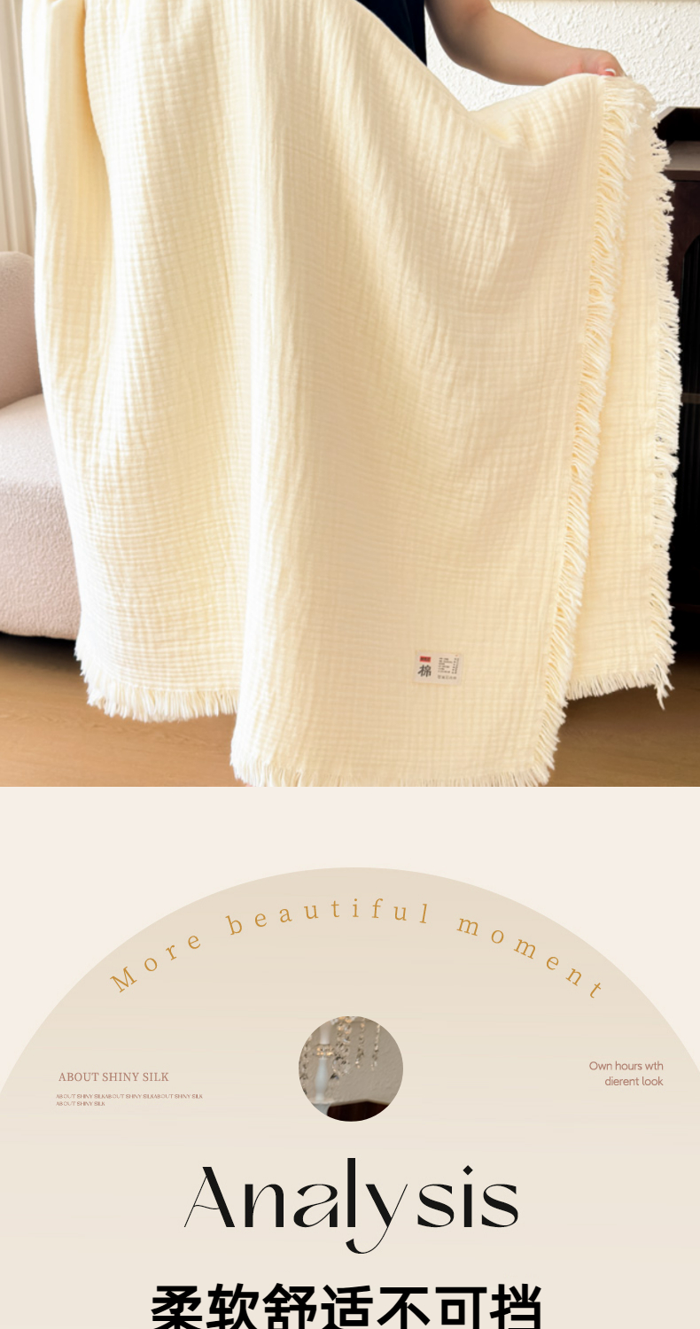商品名称:悦然毛巾被 2025新款全棉纯棉四层纱布流苏毯毛巾被 意境系列 意境-奶白