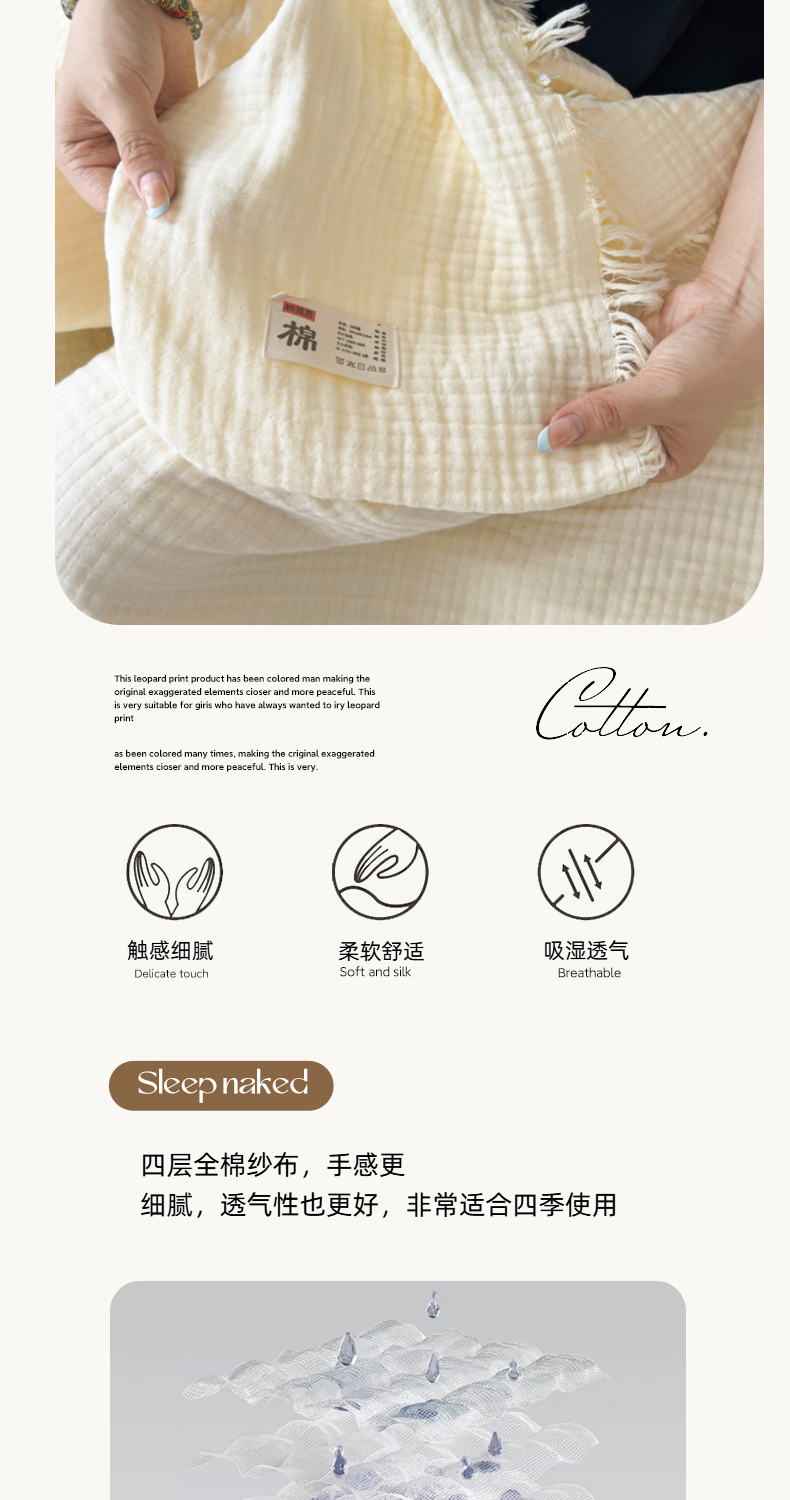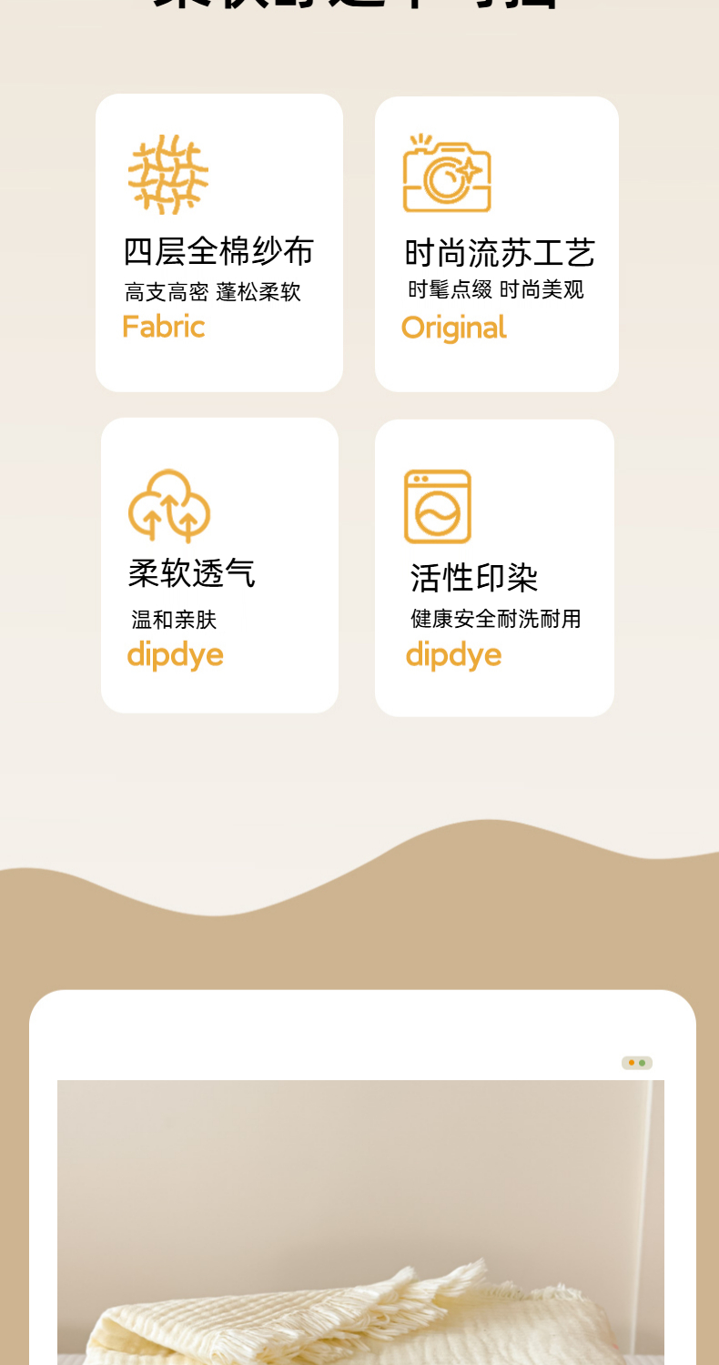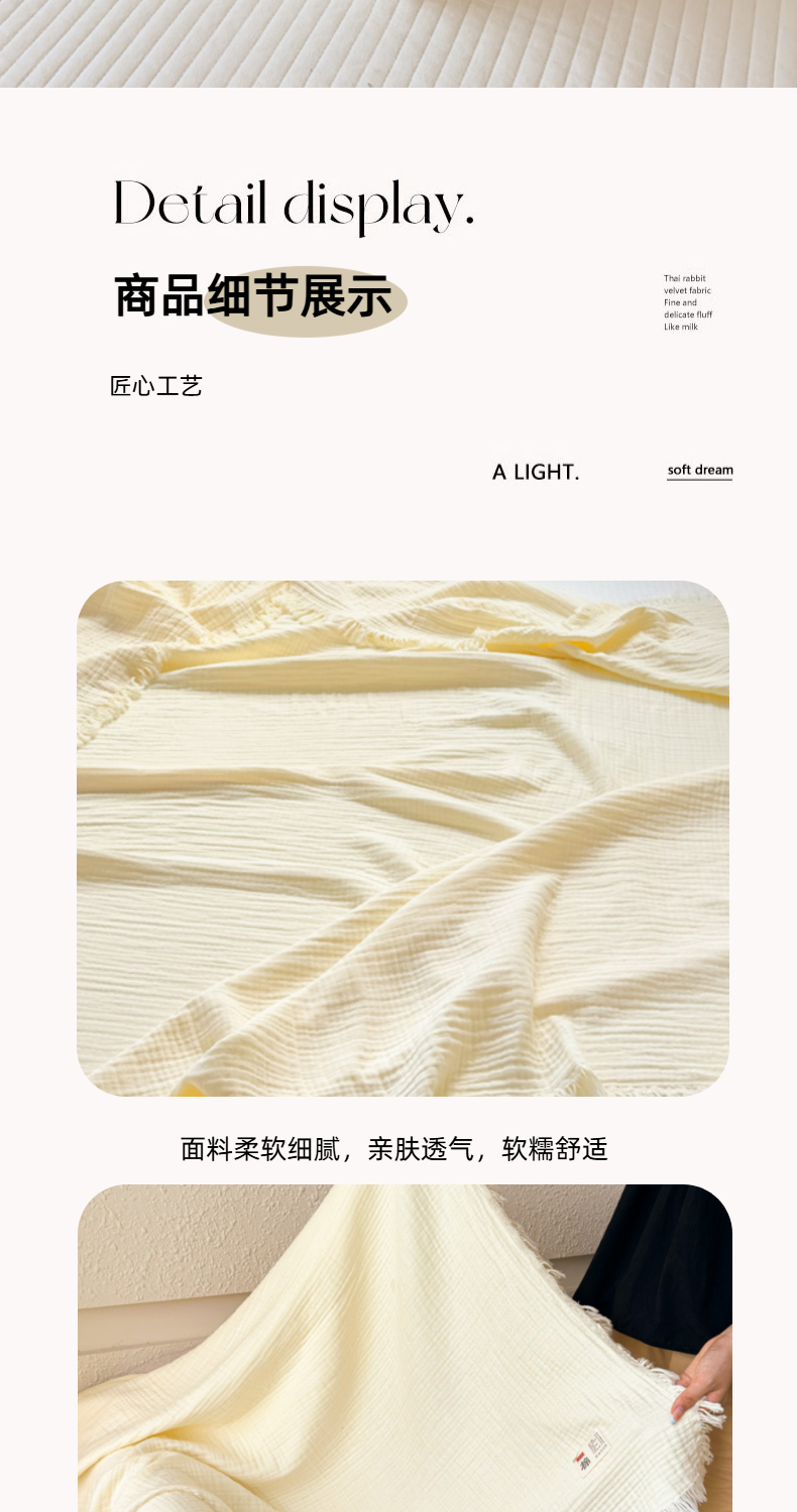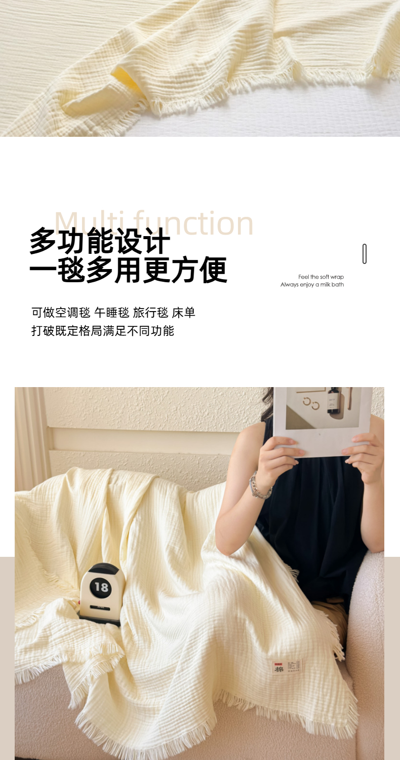 商品名称:悦然毛巾被 2025新款全棉纯棉四层纱布流苏毯毛巾被 意境系列 意境-奶白