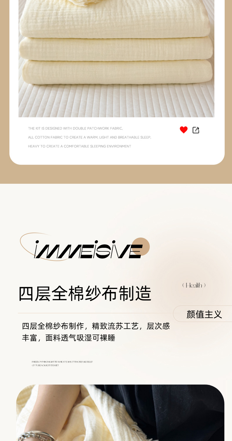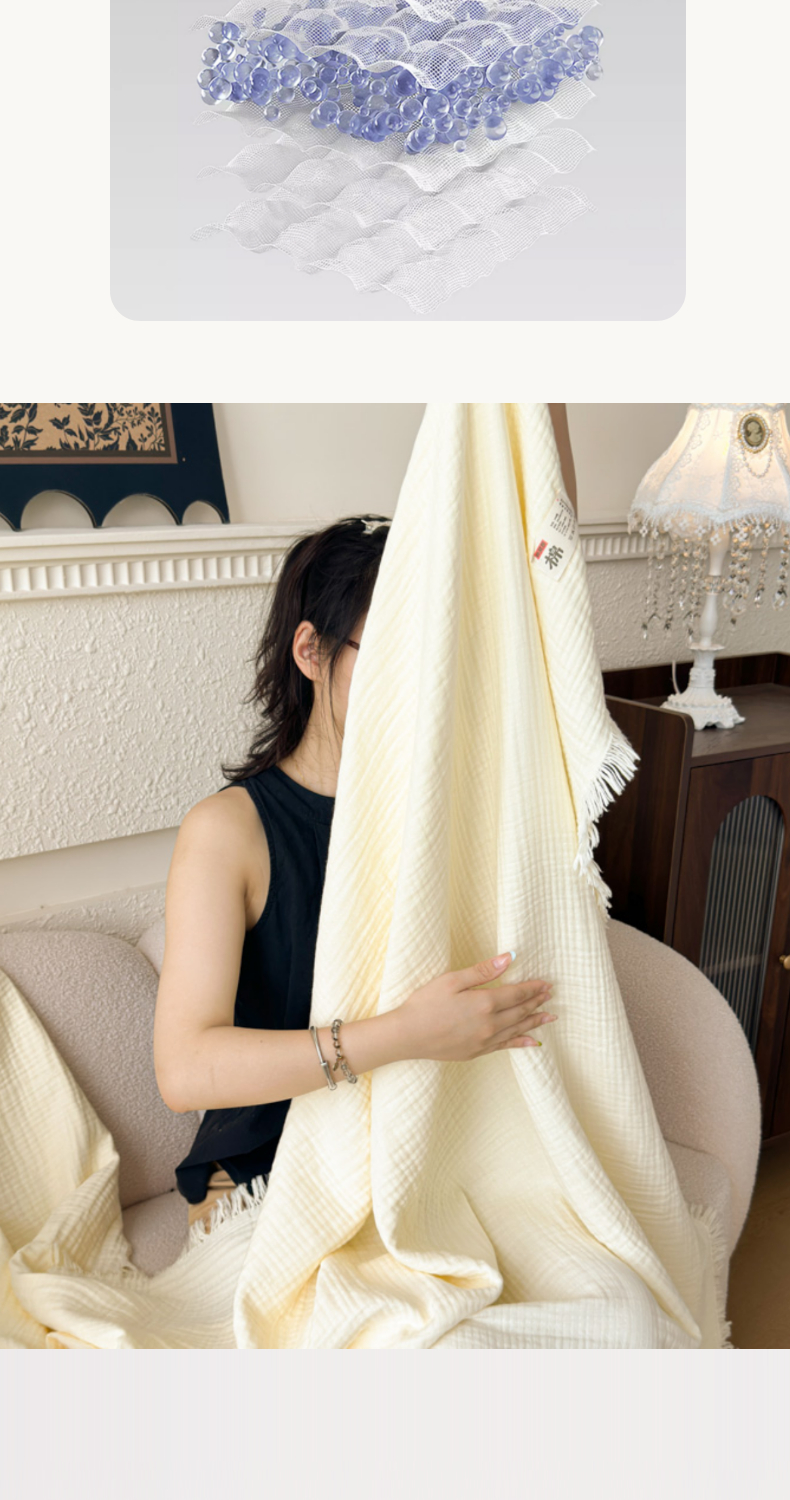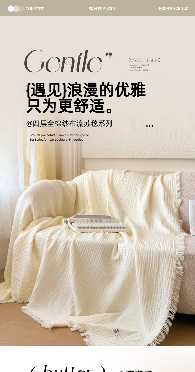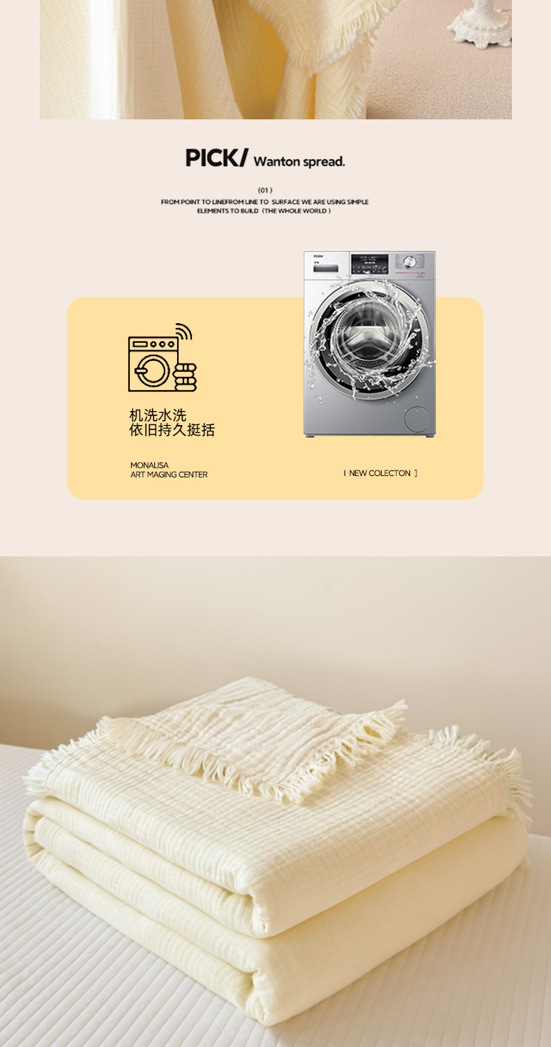 商品名称:悦然毛巾被 2025新款全棉纯棉四层纱布流苏毯毛巾被 意境系列 意境-奶白