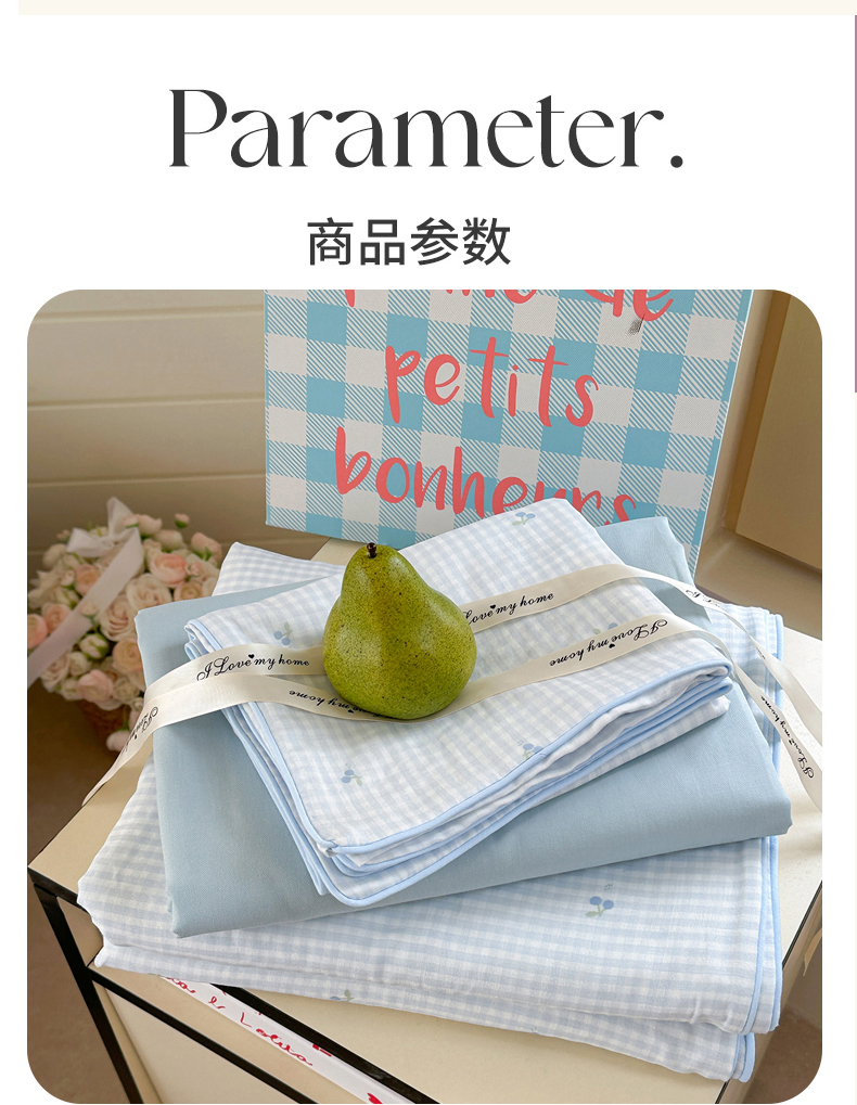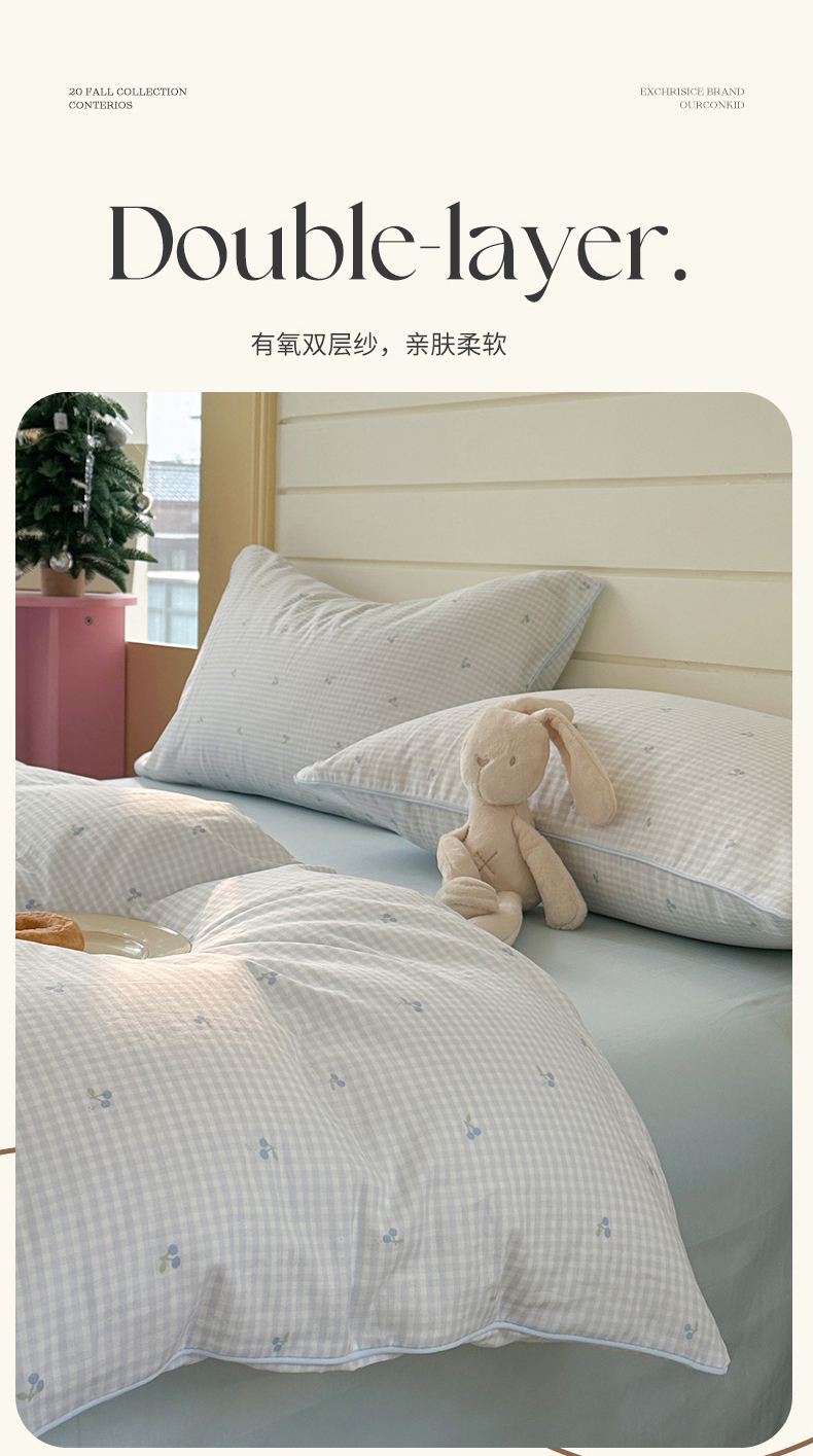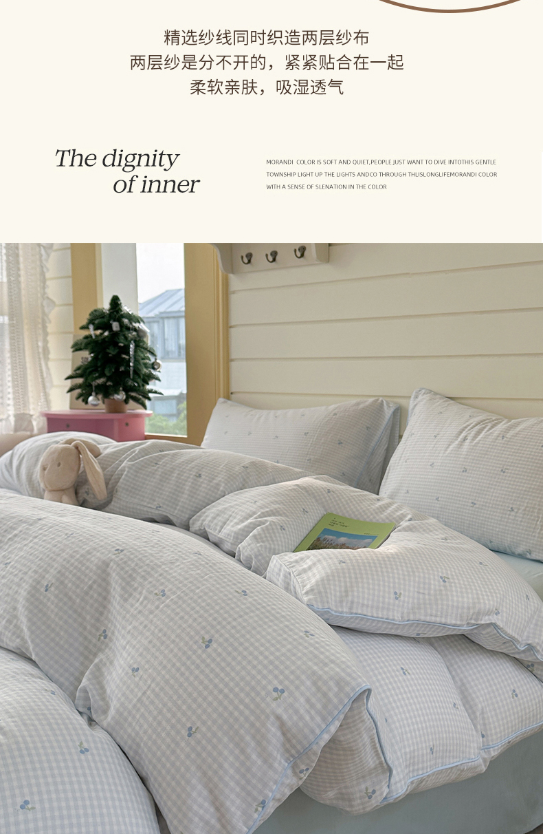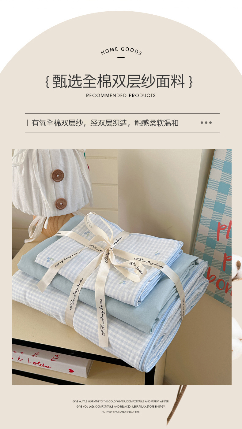 当前位置: 91家纺网 > 商品网购 > 床品套件 > 四件套 > 全棉普通四件套 > 麦伦家居 2025新品嵌绳款全棉双层纱四件套 嵌绳款-樱桃酱蓝