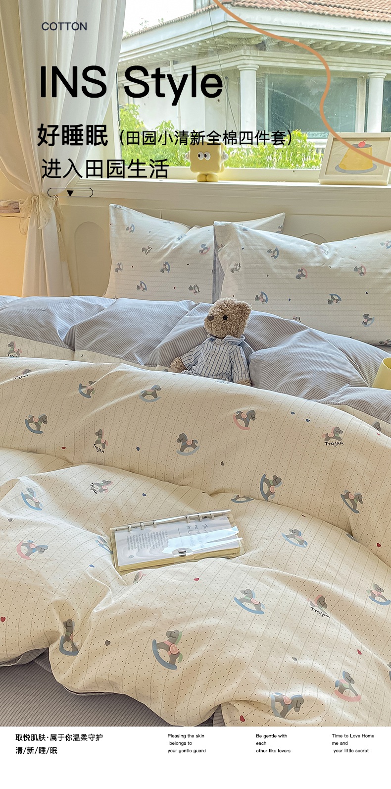 (总)黑马家居 2023新款喷气全棉斜纹四件套,爱意绵绵,贝尔熊,春意,六叶草,梦游仙境,蜜桔兔,七色花语,油画小兔,月桂幽香