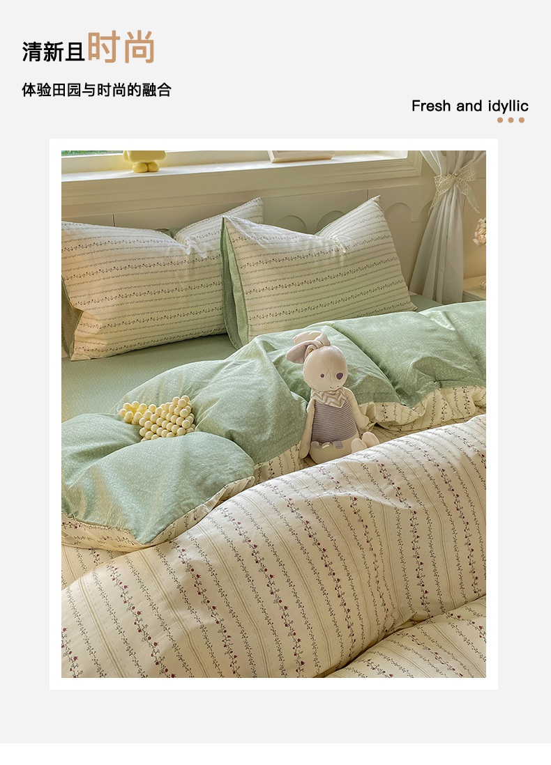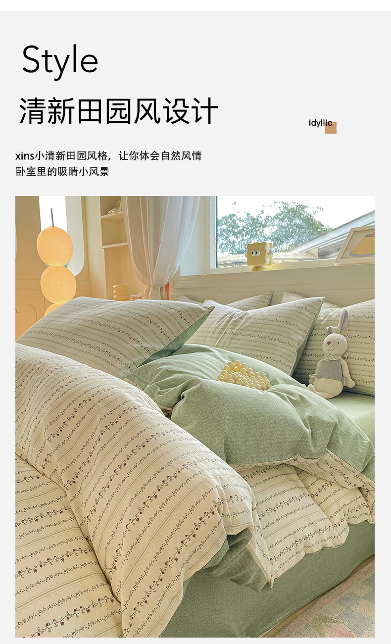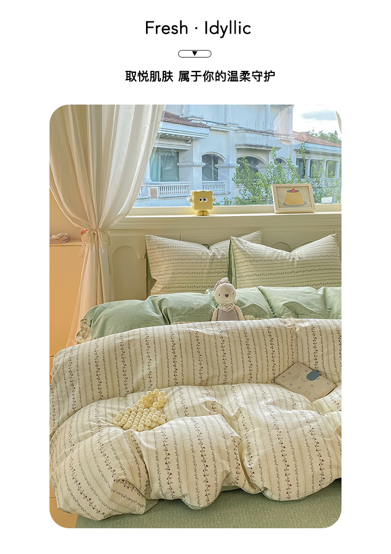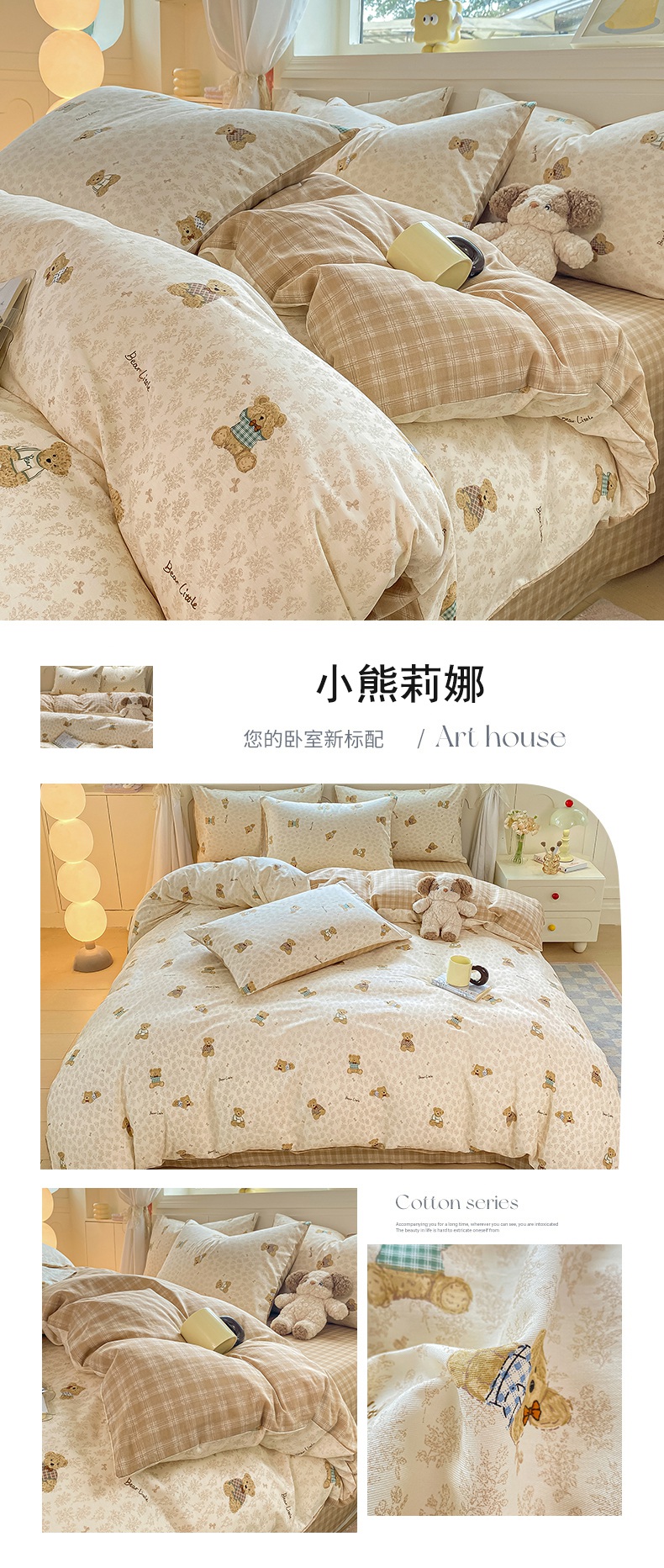 商品名称:黑马家居 2025新款13070全棉田园小清新四件套系列 晚安小熊