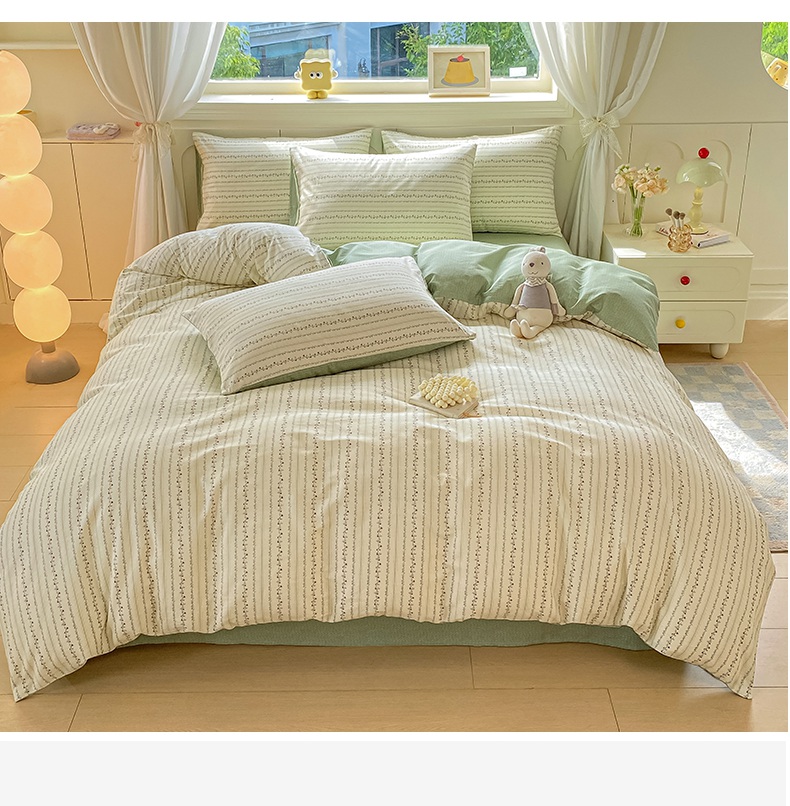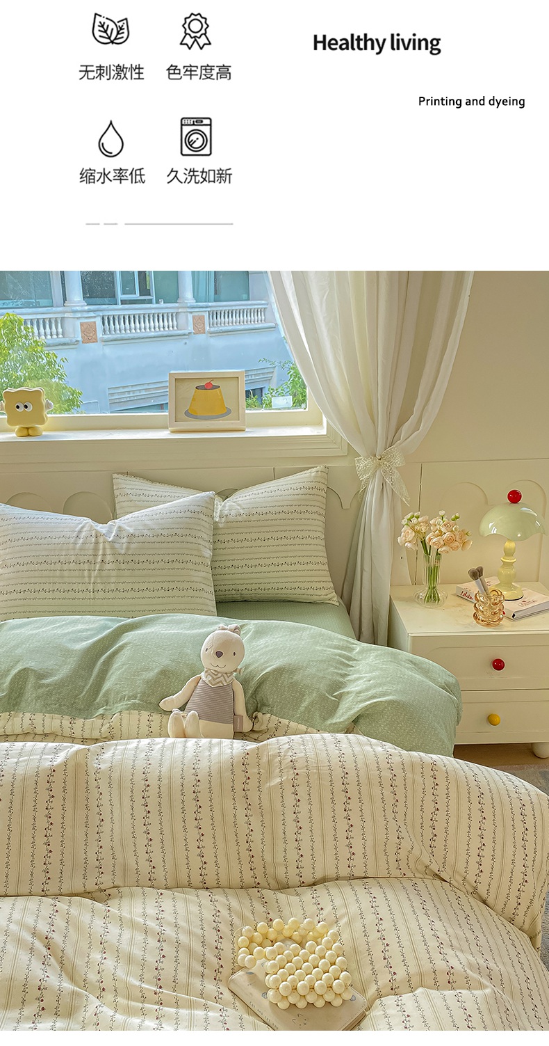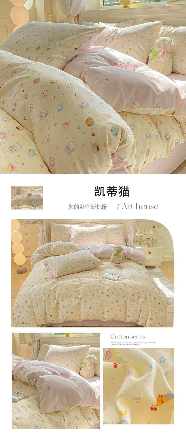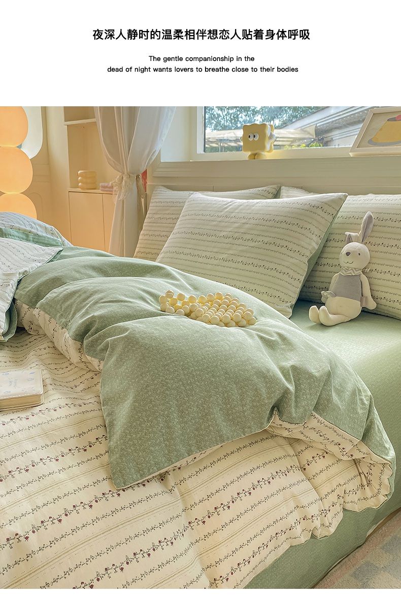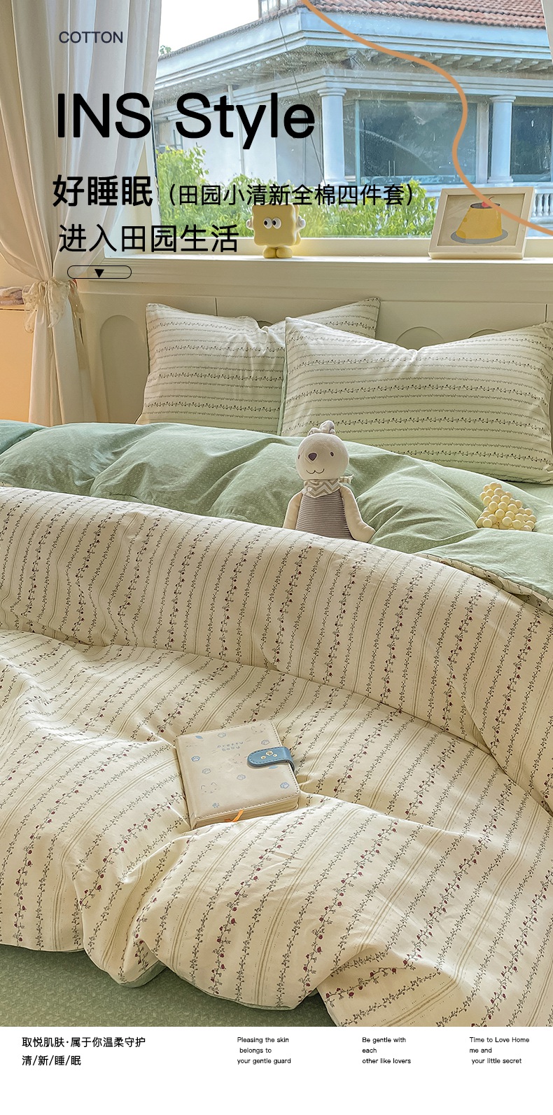 商品名称:黑马家居 2025新款13070全棉田园小清新四件套系列 晚安小熊