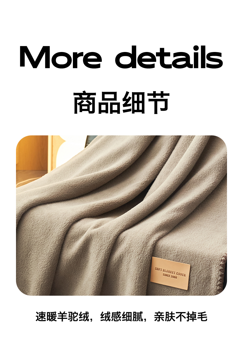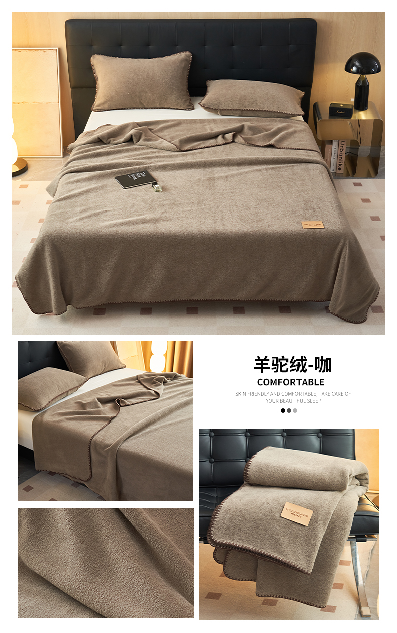 商品名称:莱家富 2026新款四季毯羊驼绒三角针边毛毯午睡沙发盖毯空调毯加厚500克双层毯 羊驼绒-咖