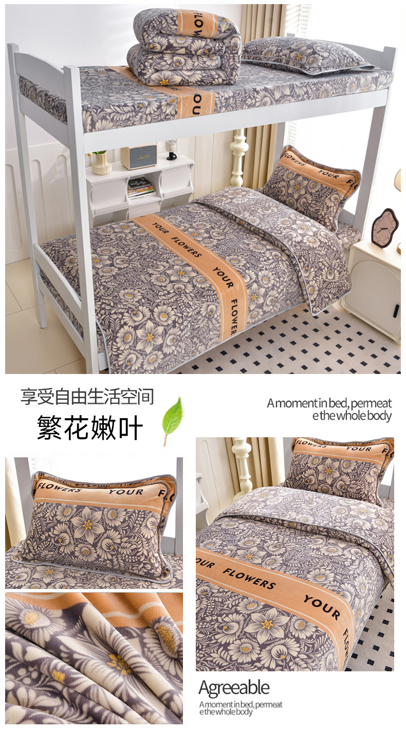 商品名称:芯诗曼家纺 2025新款金貂绒牛奶绒印花三件套 繁花嫩叶