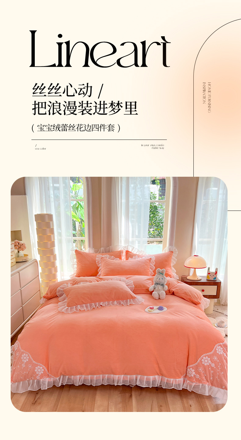 唐人居 2025新款宝宝绒蕾丝花边四件套--米朵系列 米朵-玉