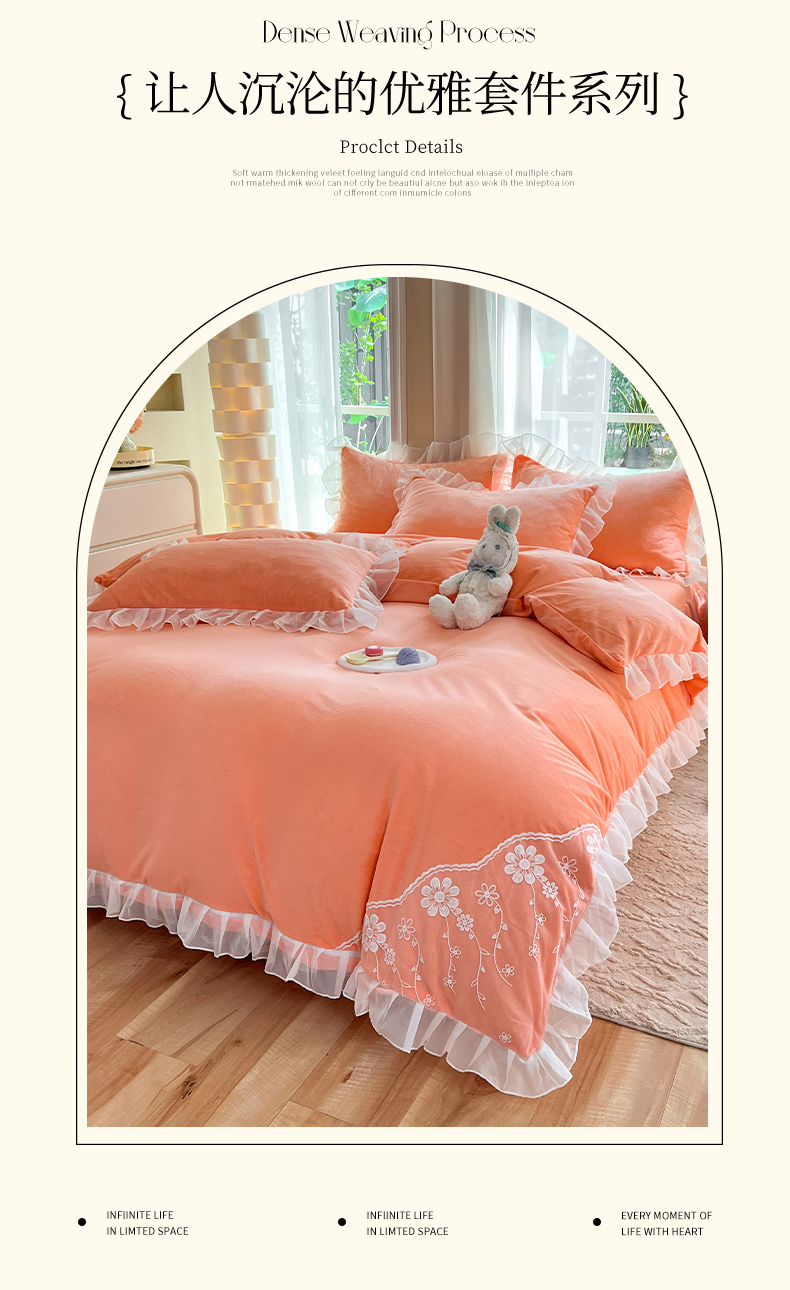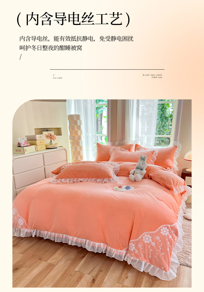 商品名称:唐人居 2025新款宝宝绒蕾丝花边四件套--米朵系列 米朵-玉