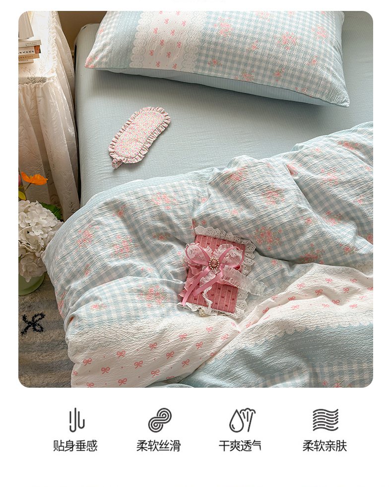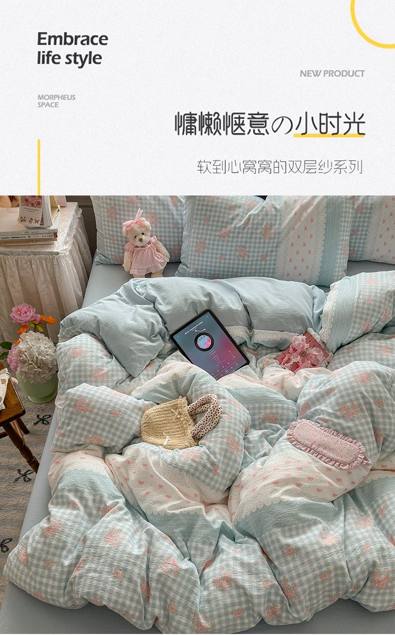 当前位置: 91家纺网 > 商品网购 > 床品套件 > 四件套 > 双层纱四件套 > 丽美人家纺 2025新款【全尺寸不断货】高克重木棉提花双层纱四件套 QB蓝梦