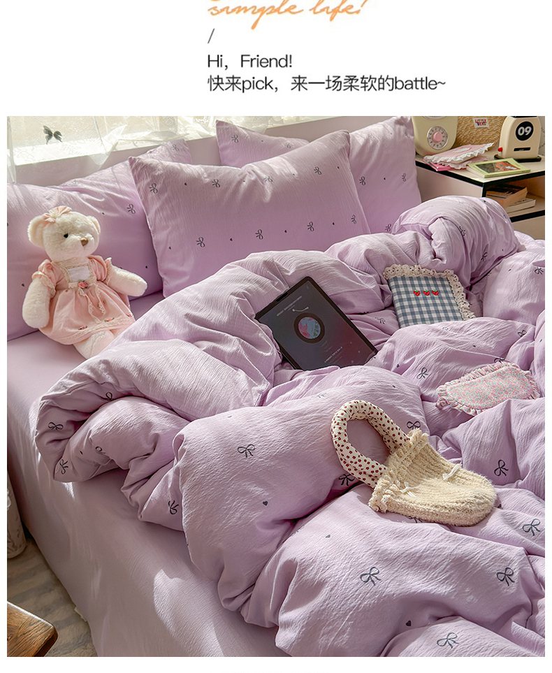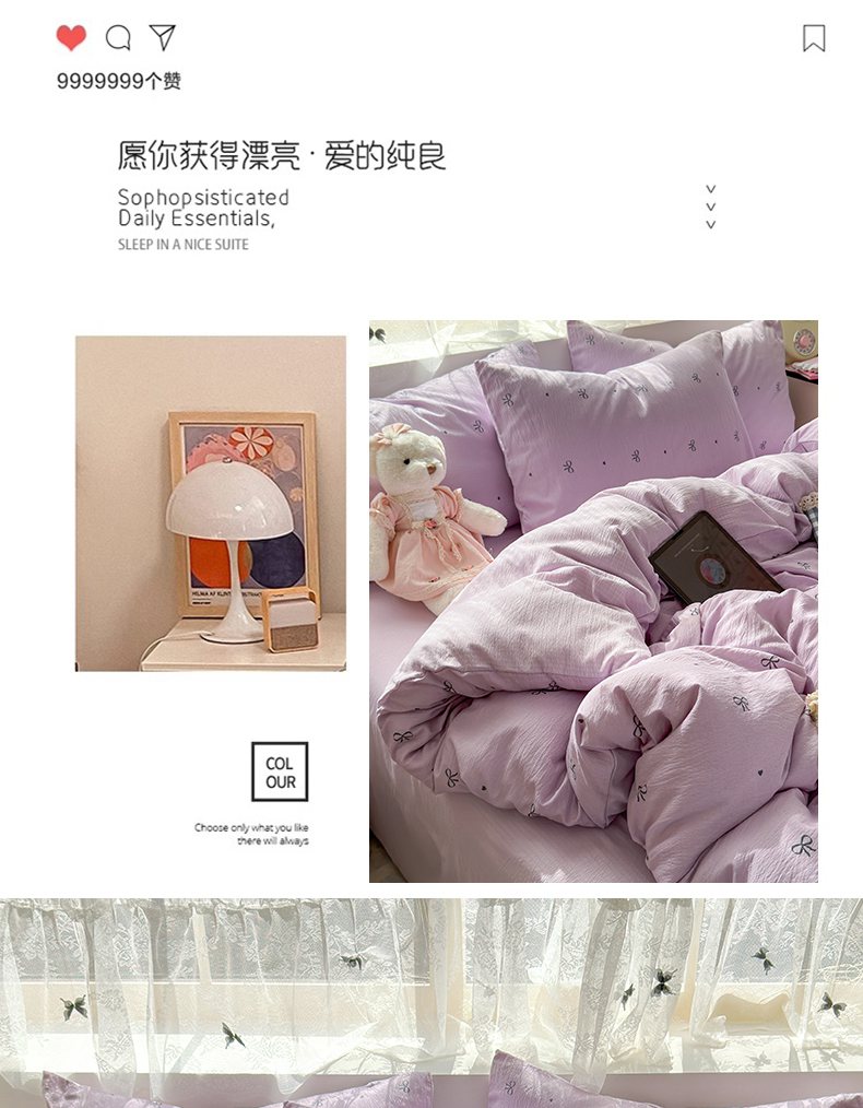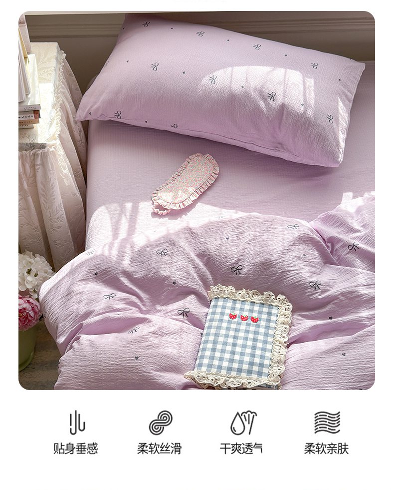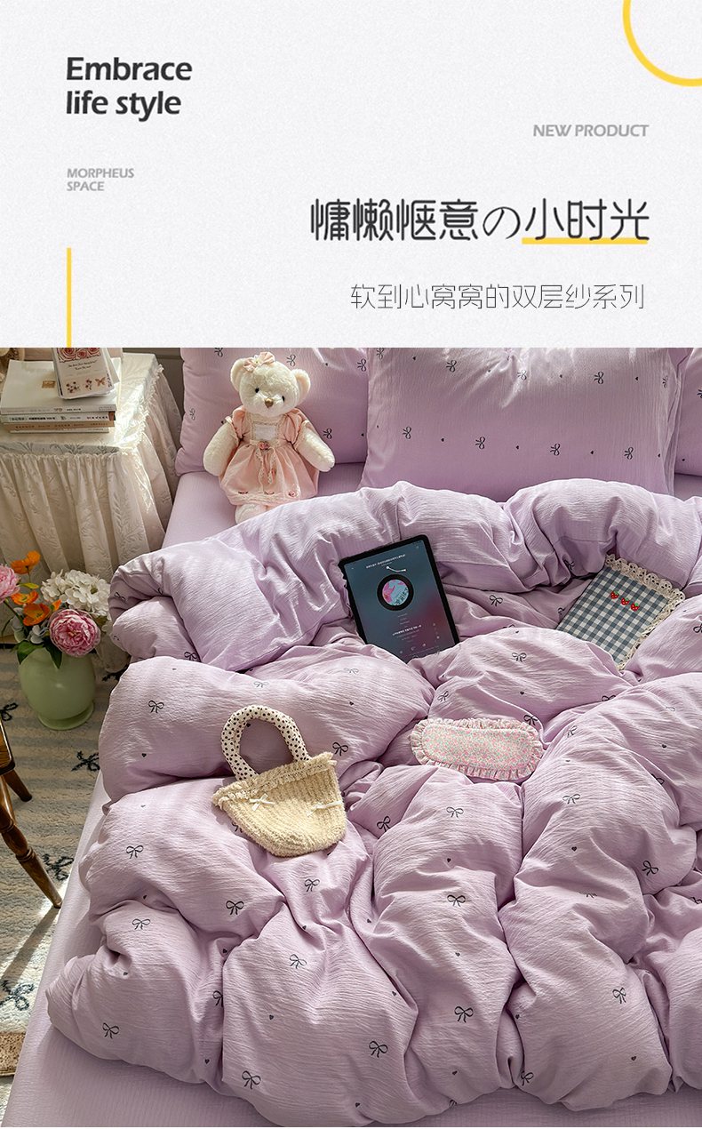 当前位置: 91家纺网 > 商品网购 > 床品套件 > 四件套 > 双层纱四件套 > 丽美人家纺 2025新款【全尺寸不断货】高克重木棉提花双层纱四件套 QB紫蝴蝶结