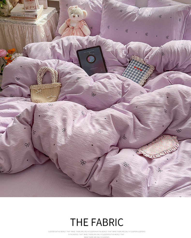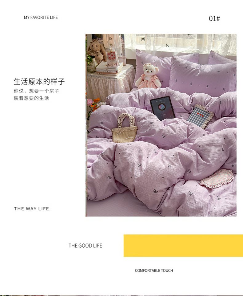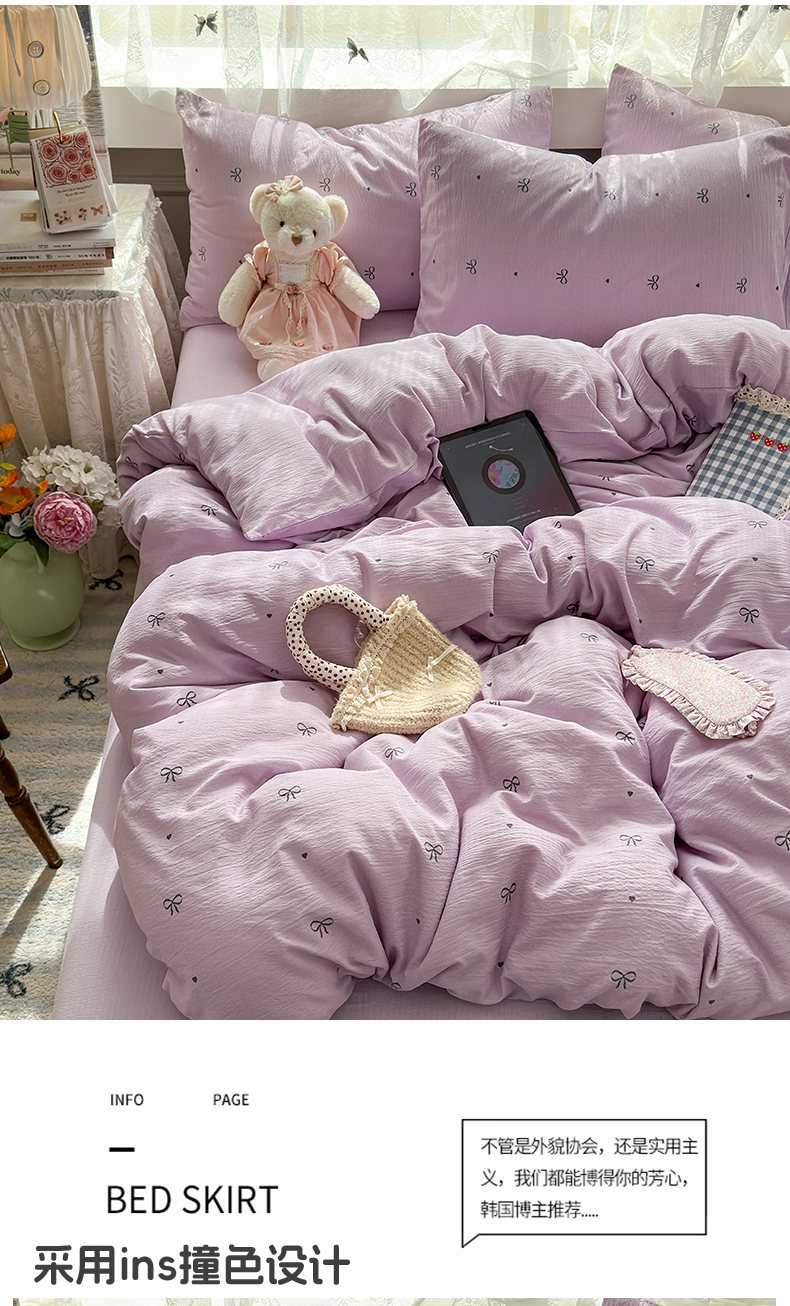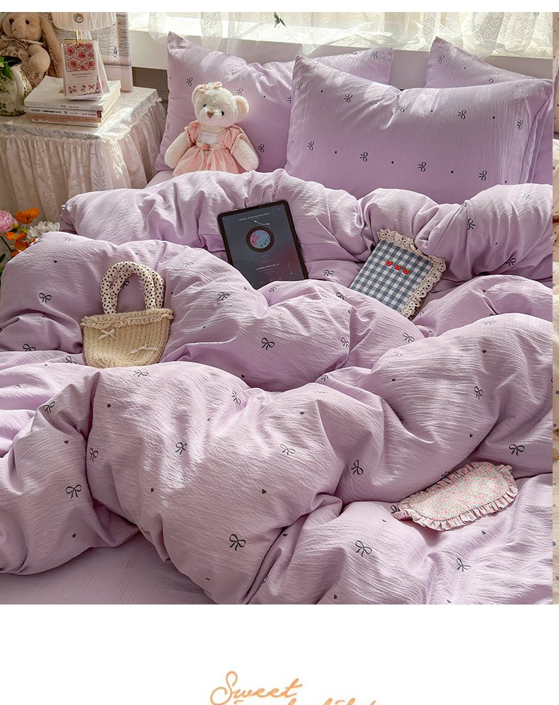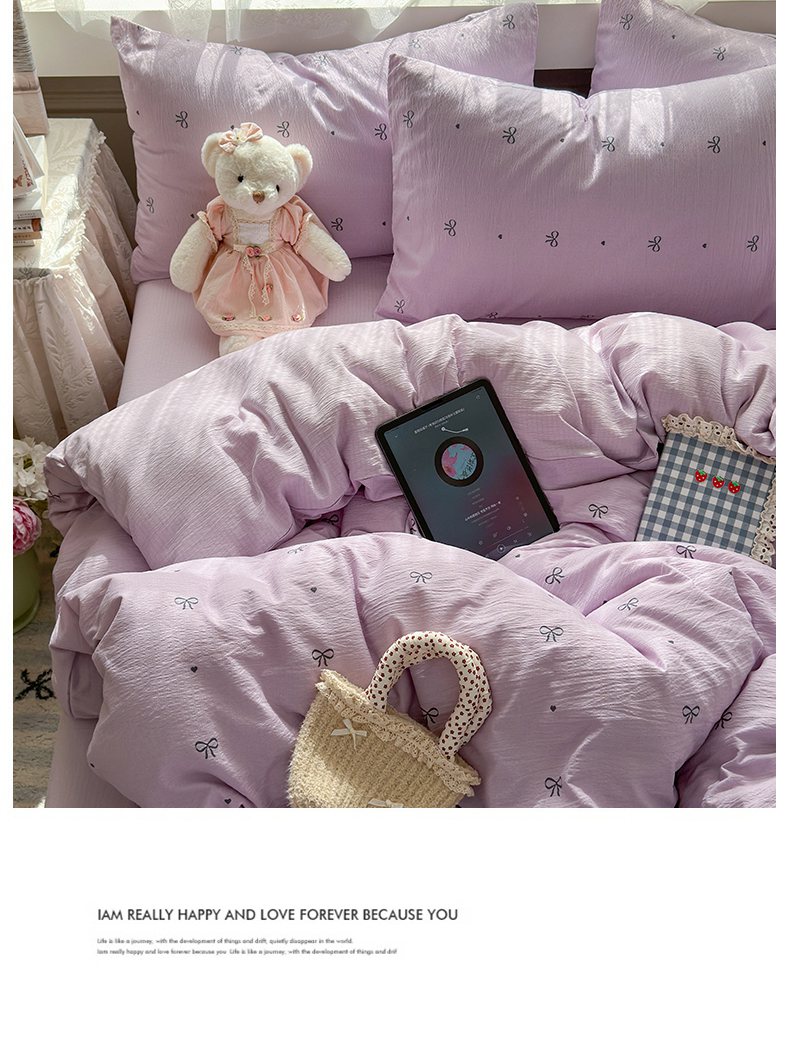 当前位置: 91家纺网 > 商品网购 > 床品套件 > 四件套 > 双层纱四件套 > 丽美人家纺 2025新款【全尺寸不断货】高克重木棉提花双层纱四件套 QB紫蝴蝶结