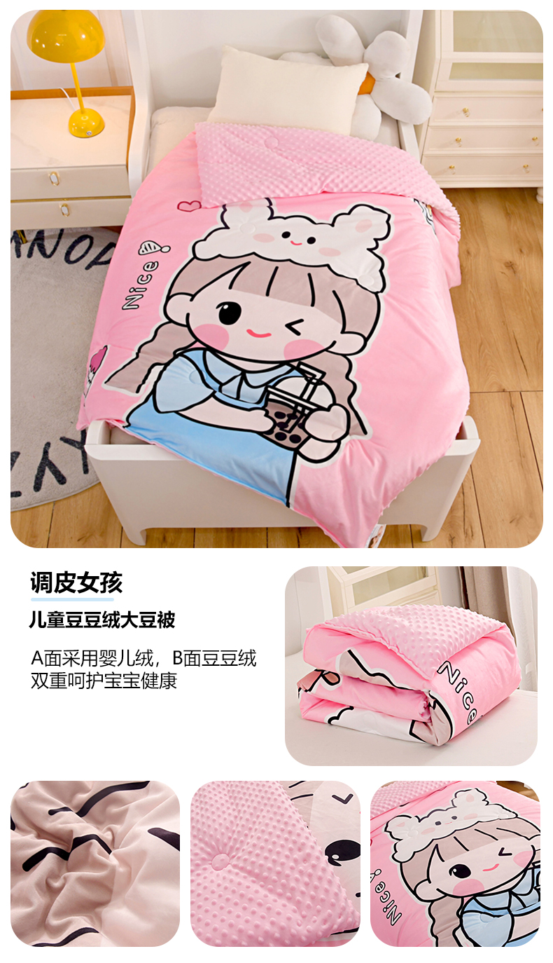 • 91家纺网 家纺一手货源 找家纺 (总)萌宝家纺 2025新款牛奶绒儿童被套幼儿园冬被可拆洗,调皮熊猫,粉色小猫,卡通草莓,恐龙奇奇,没烦恼,小熊奶咖