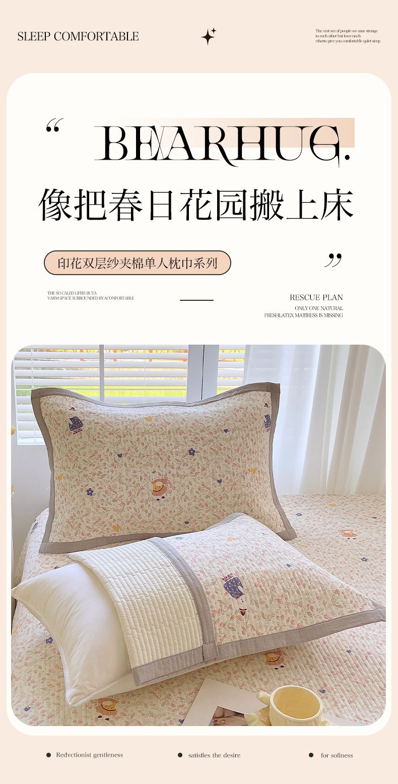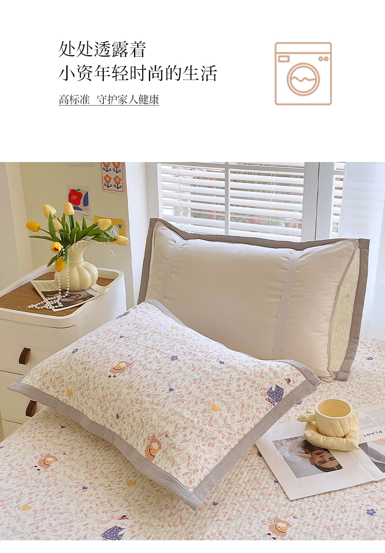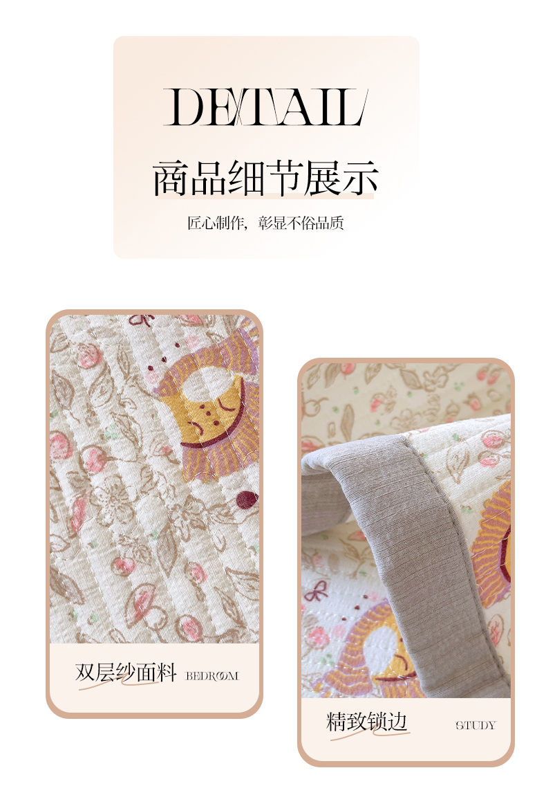商品名称:雨彤家纺 2025新款A类双层纱夹棉单人枕巾 萌萌哒