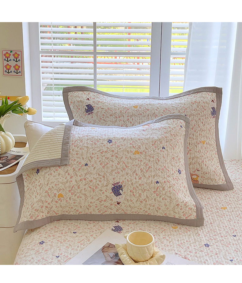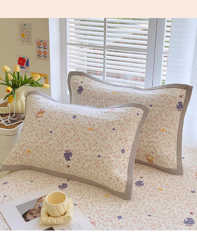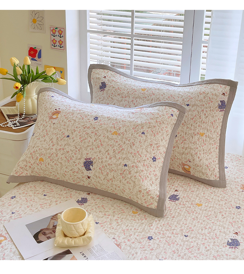 雨彤家纺 2025新款A类双层纱夹棉单人枕巾 萌萌哒