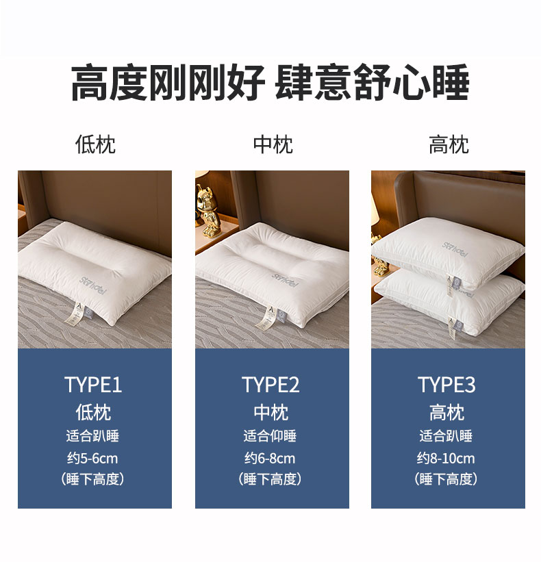 (总)永乐枕芯 2025新款元气低枕头枕芯-登峰一号,组合图,白色,粉色,蓝色