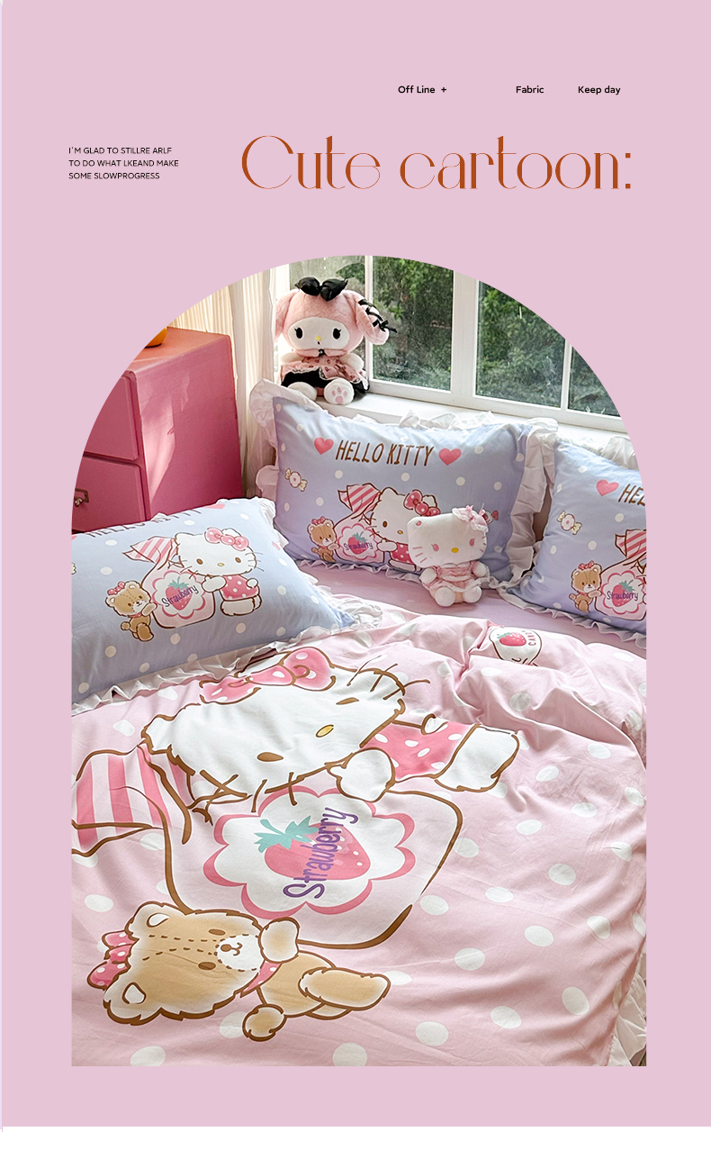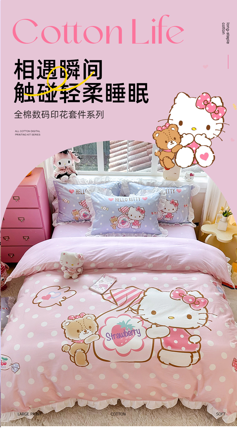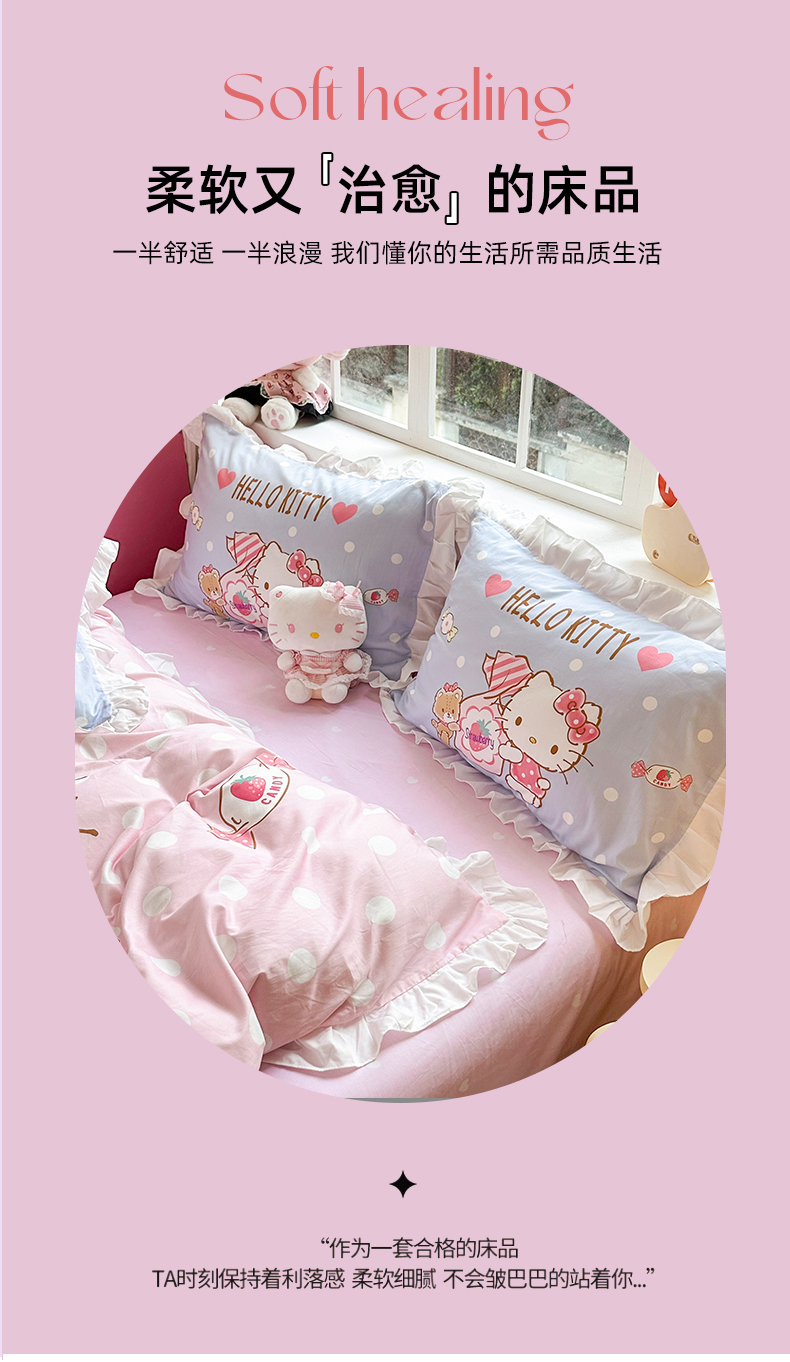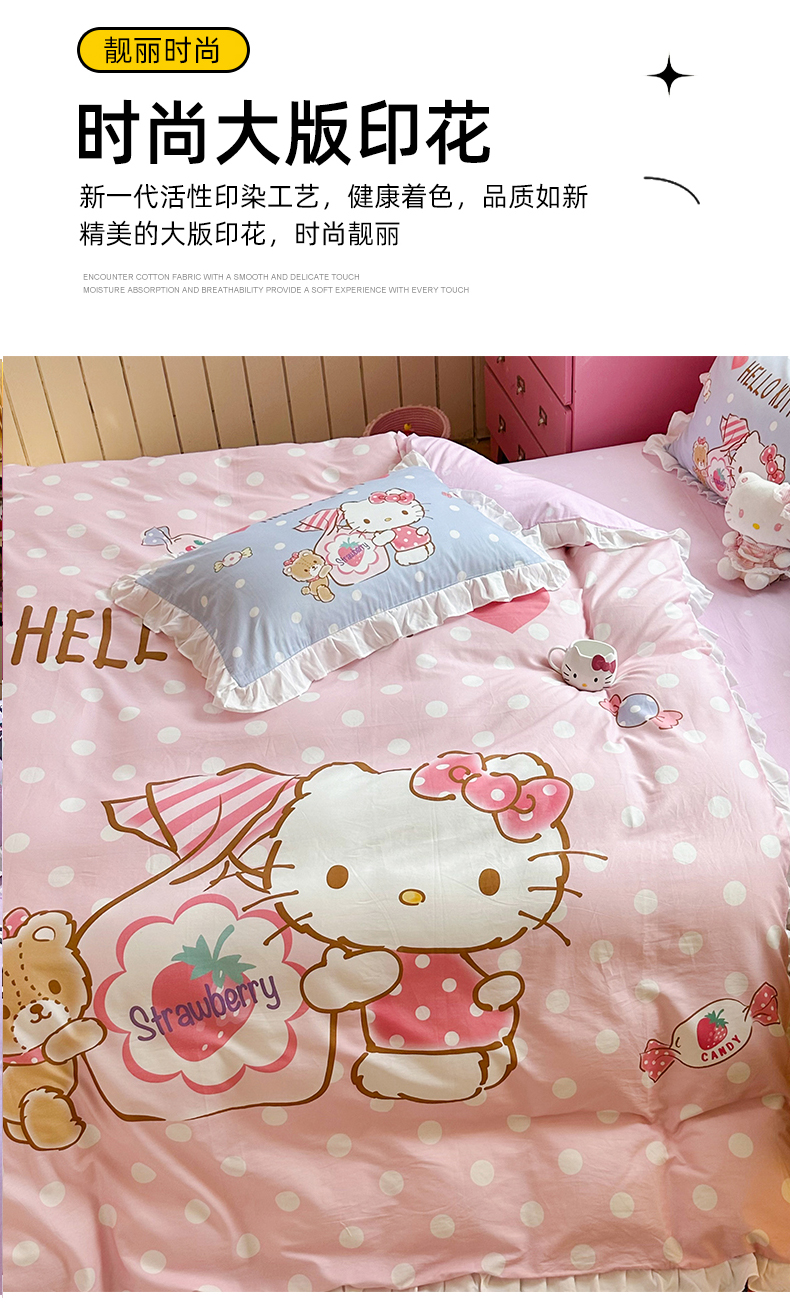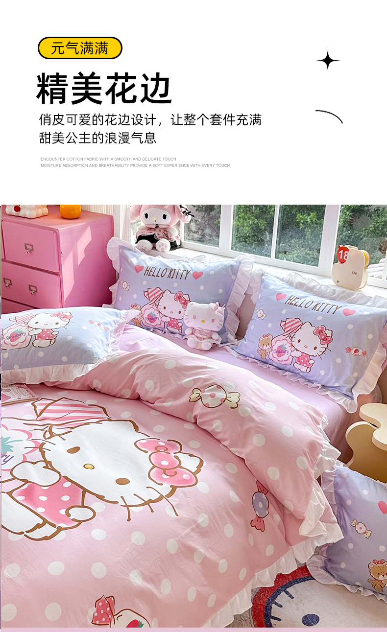 当前位置: 91家纺网 > 商品网购 > 床品套件 > 四件套 > 全棉普通四件套 > 2025新款大版三丽鸥系列 纯棉床单全棉床裙学生三四件套 花边款 草莓糖果凯蒂猫-白花边