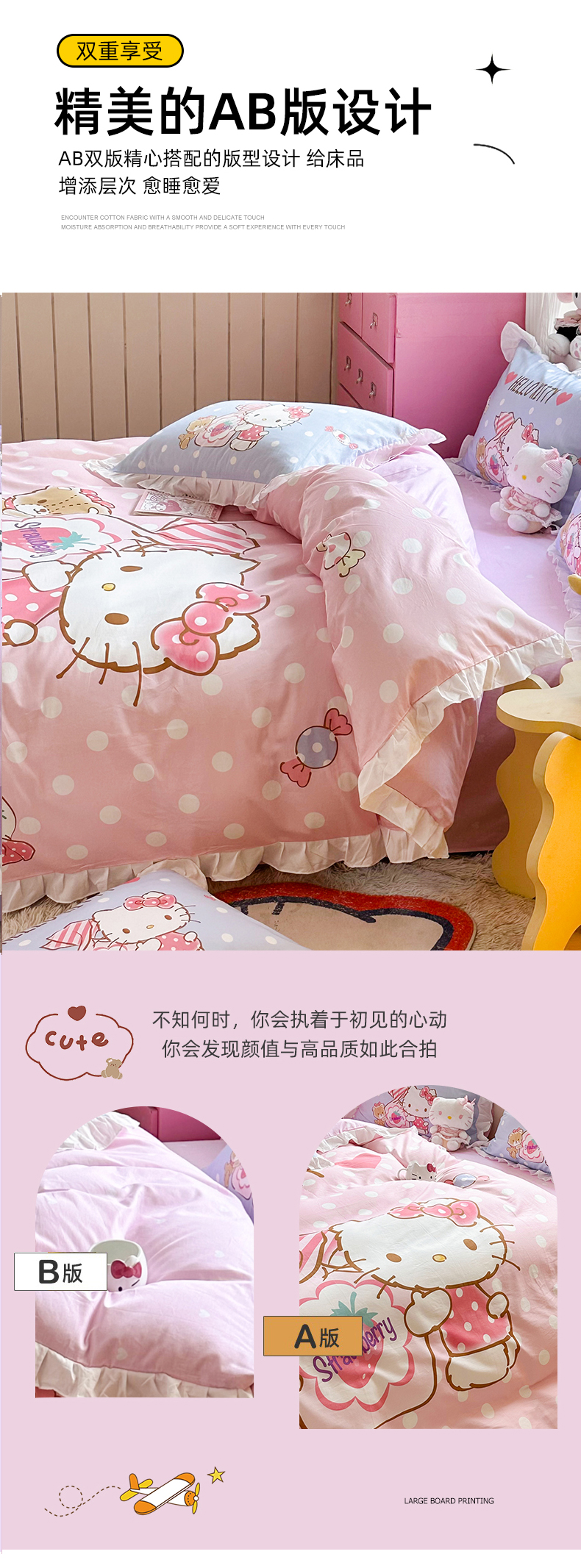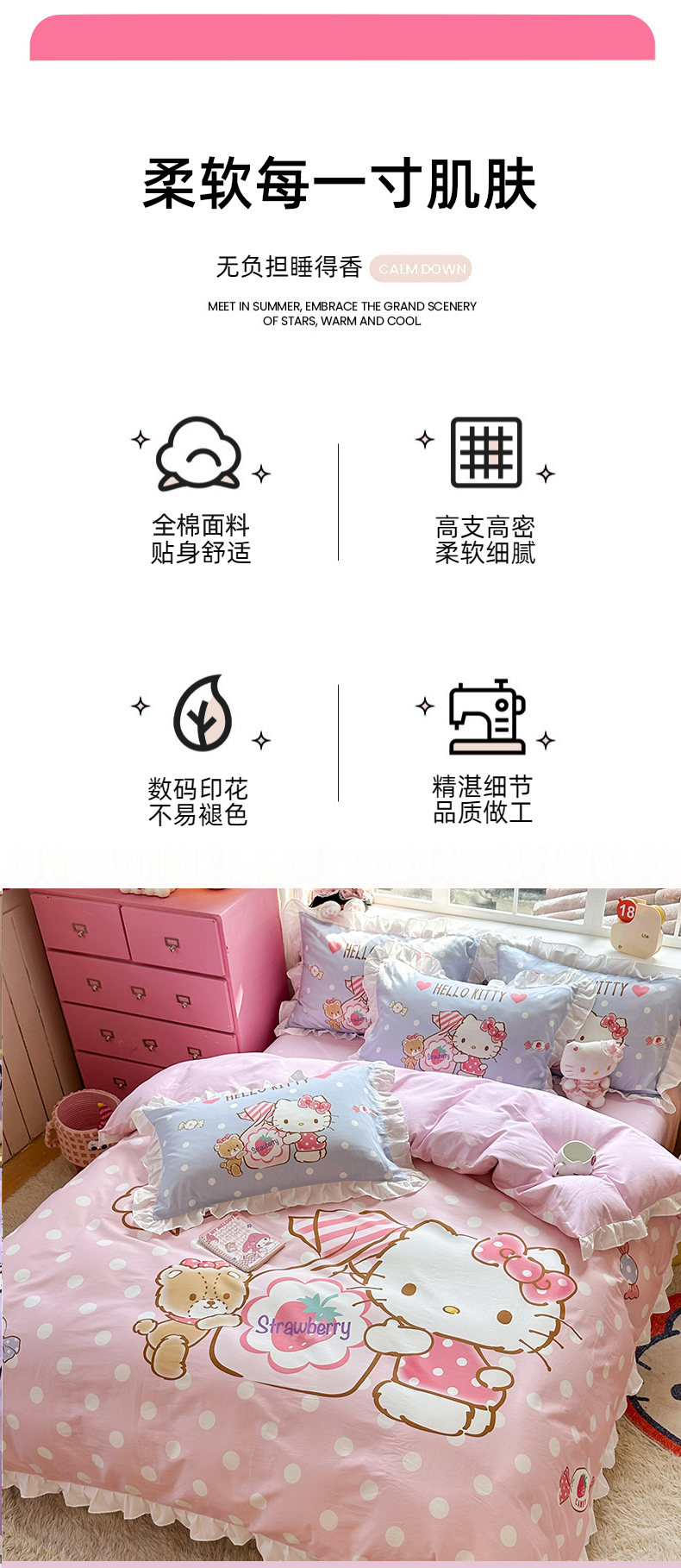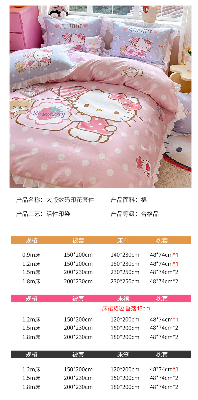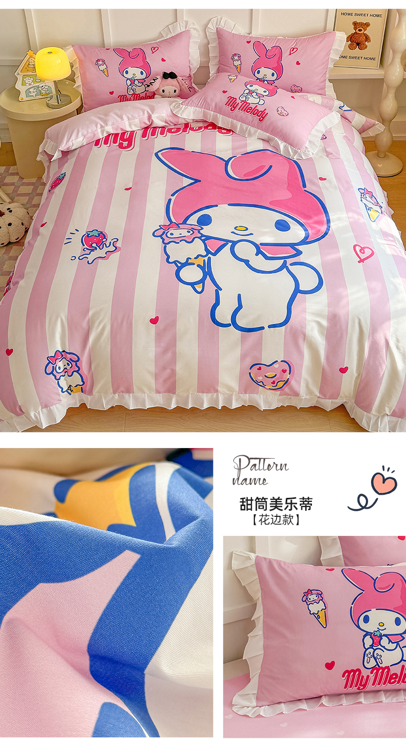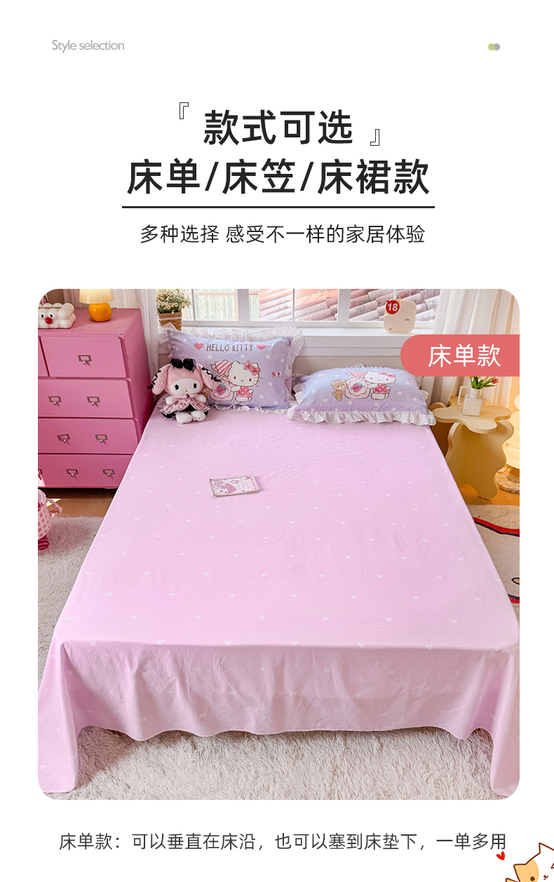 当前位置: 91家纺网 > 商品网购 > 床品套件 > 四件套 > 全棉普通四件套 > 2025新款大版三丽鸥系列 纯棉床单全棉床裙学生三四件套 花边款 草莓糖果凯蒂猫-白花边