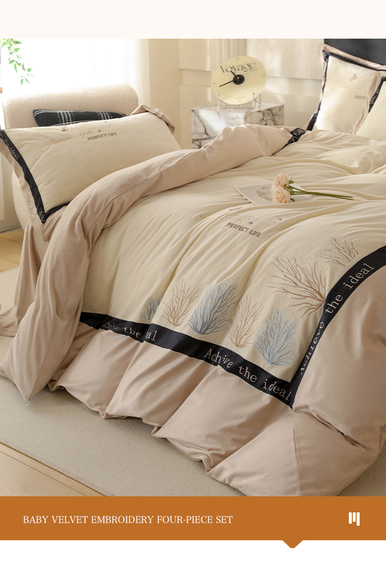 商品名称:唐人居 2025新款宝宝绒绣花四件套-塞纳河畔 塞纳河畔-米白