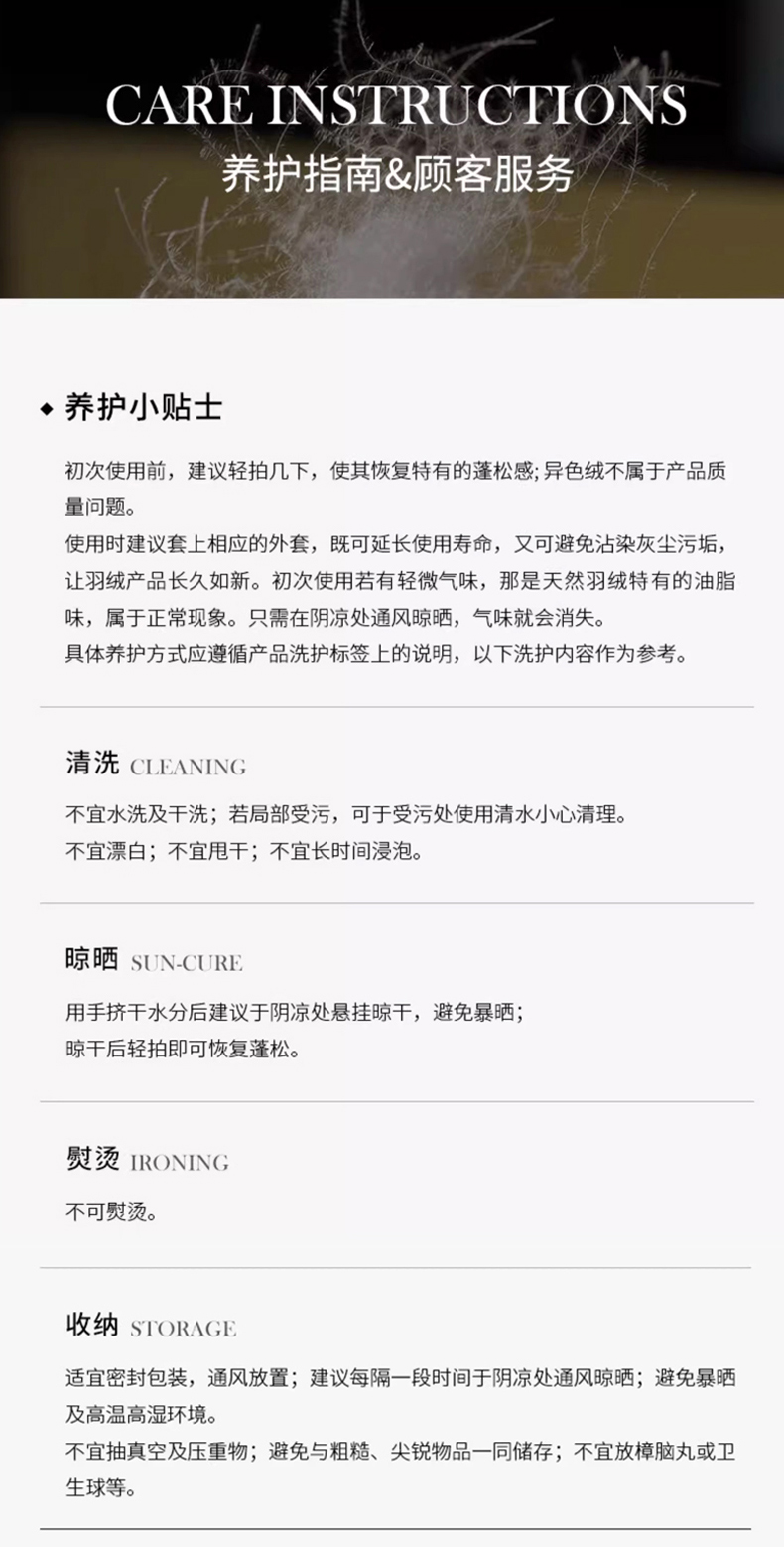 • 羽绒羽毛种类: 白鹅绒