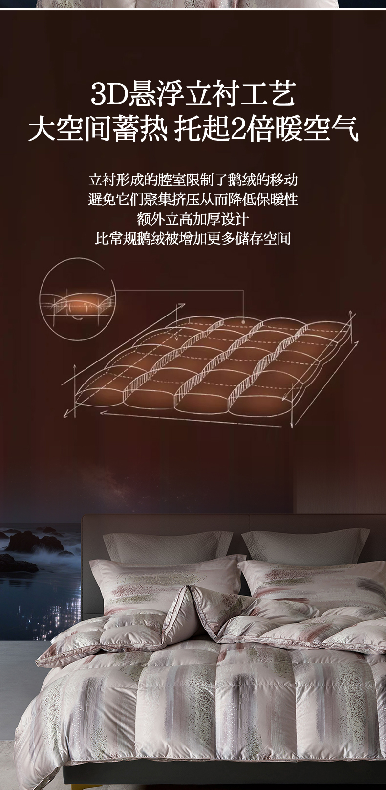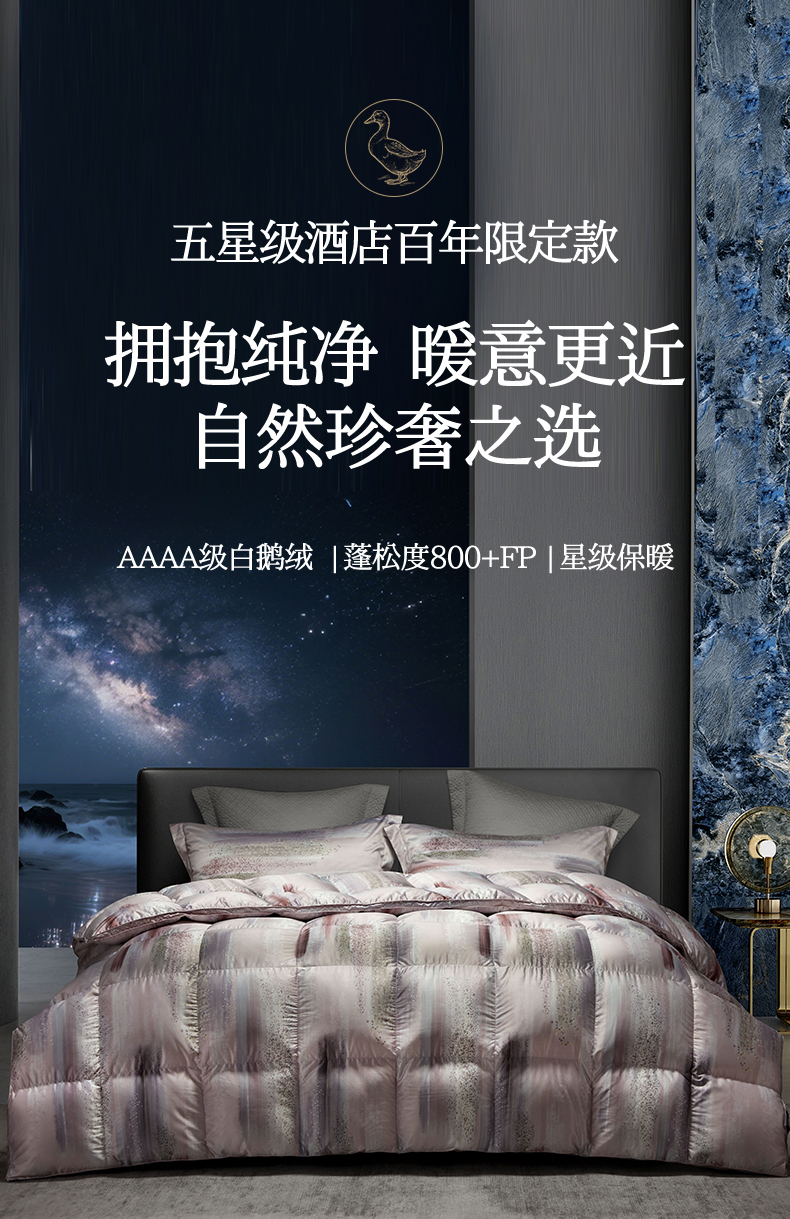 • 91家纺网 家纺一手货源 找家纺 织梦人羽绒工厂店 2025新款高蓬松羽绒95鹅绒大牌同款花型莫代尔印花 琥珀之光暖粉