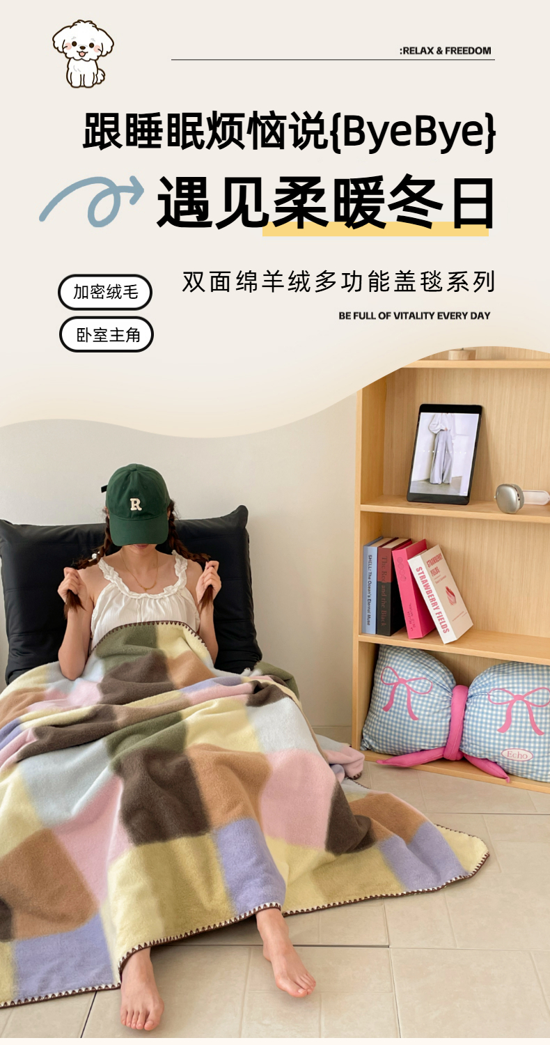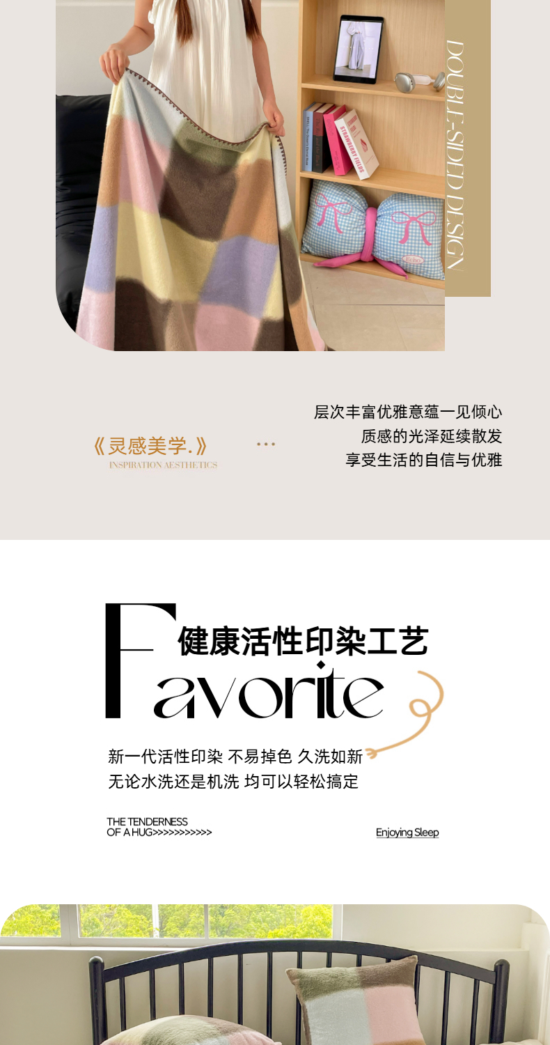 (总)晚爱家纺(原晚安家居) 2025新款跨境暖羊绒双面绵羊绒沙发毯多功能盖毯,彩波点,糖块,节日派对,咖波点,蓝郁,梦幻花园,南山蓝,七彩条,虚幻灰,虚幻米,组合图仅供展示不可下单