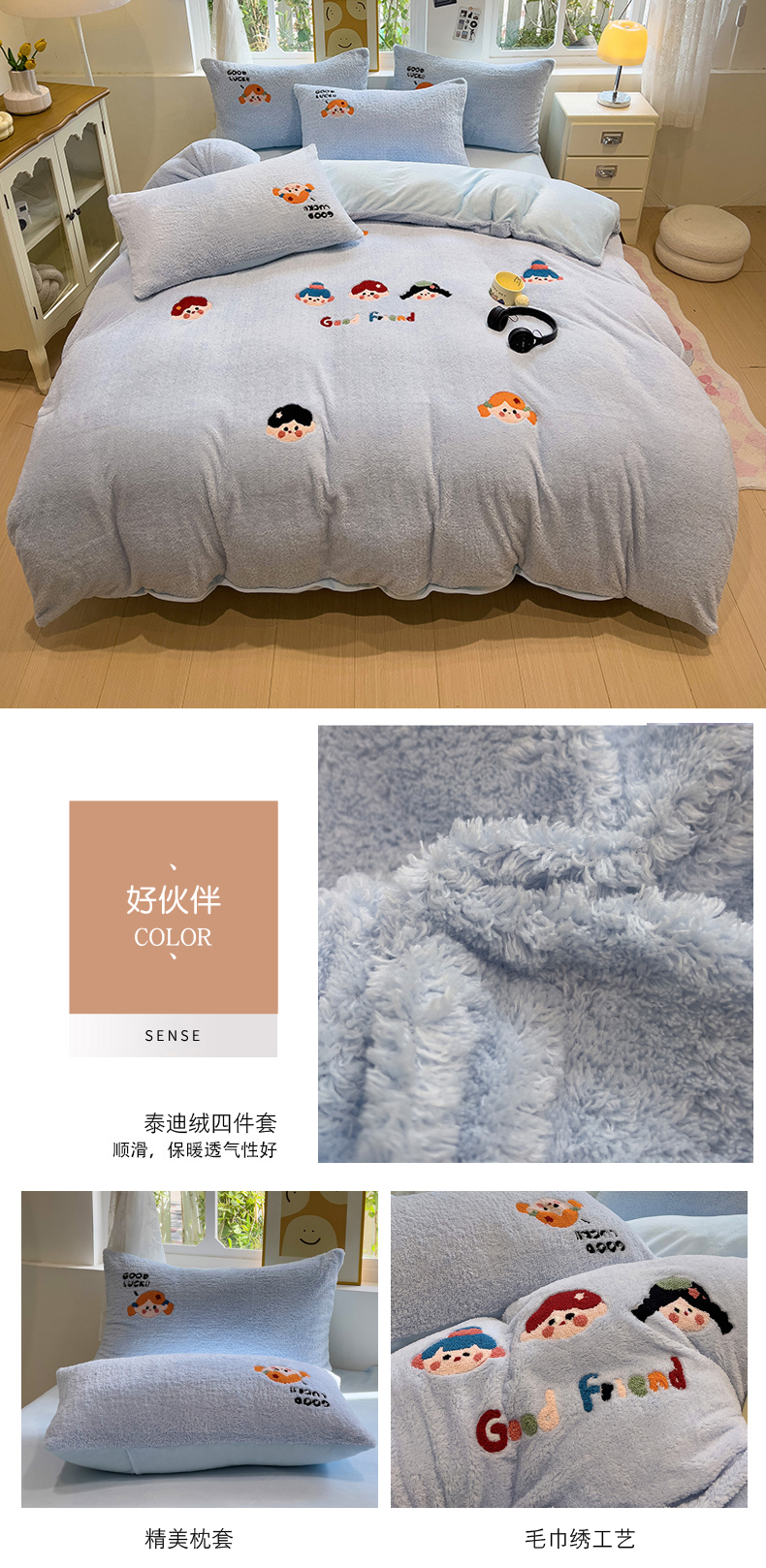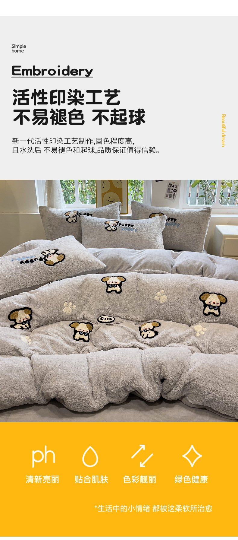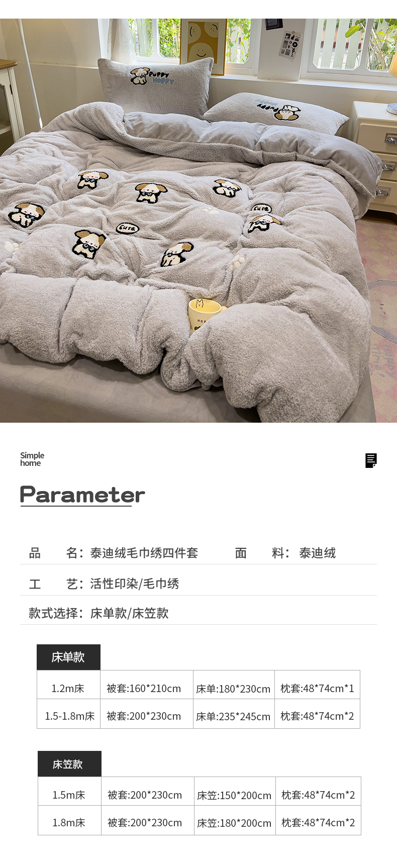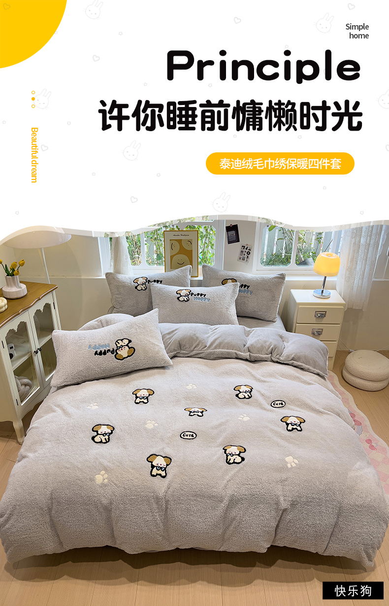 当前位置: 91家纺网 > 商品网购 > 床品套件 > 四件套 > 牛奶绒四件套 > 金爱家 2025新款泰迪绒毛巾绣四件套 泰迪绒-快乐狗