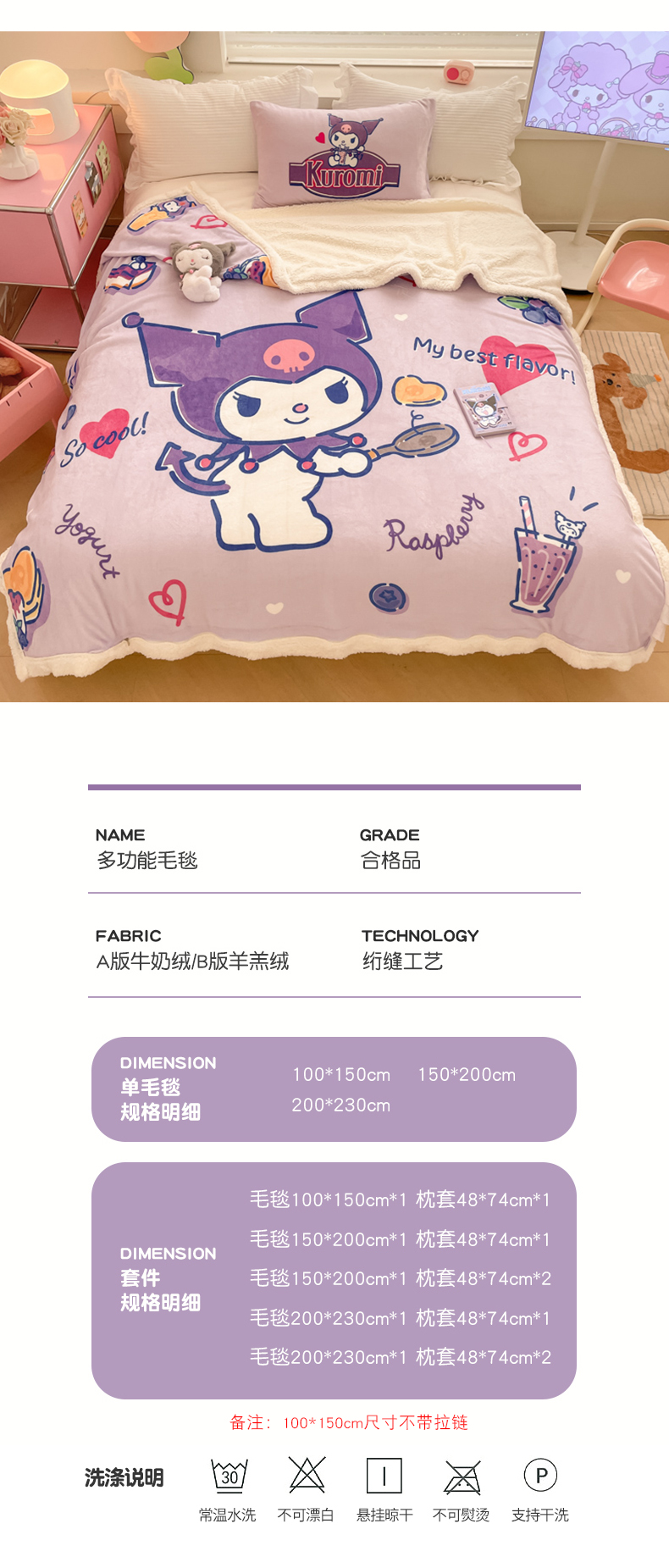 当前位置: 91家纺网 > 商品网购 > 毛毯休闲毯绒毯 > 毛毯 > 金爱家 2025新款卡通多功能牛奶绒羊羔绒毛毯 羊羔绒-乐趣库洛米