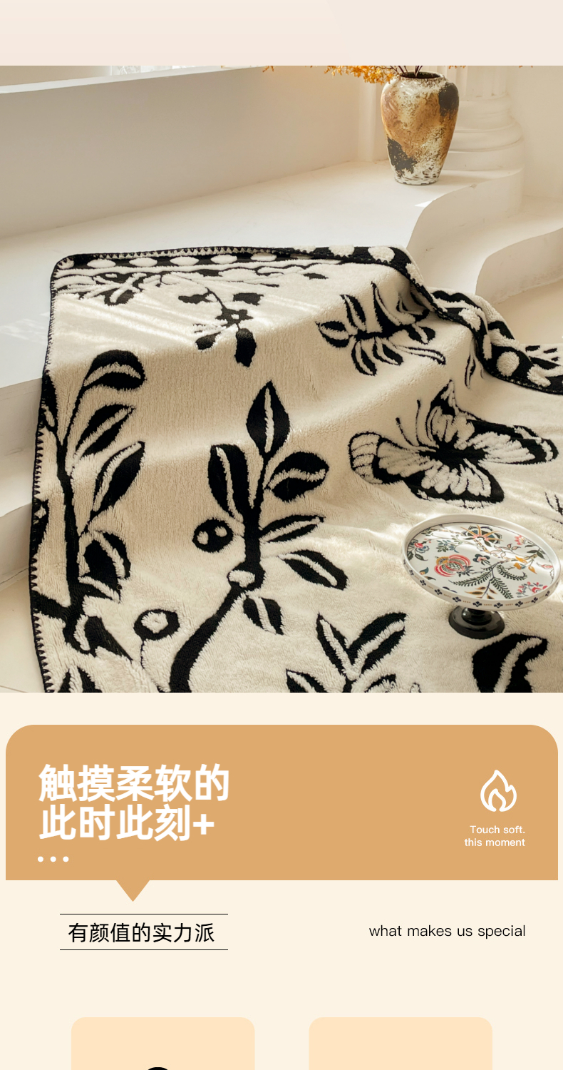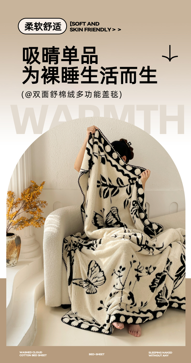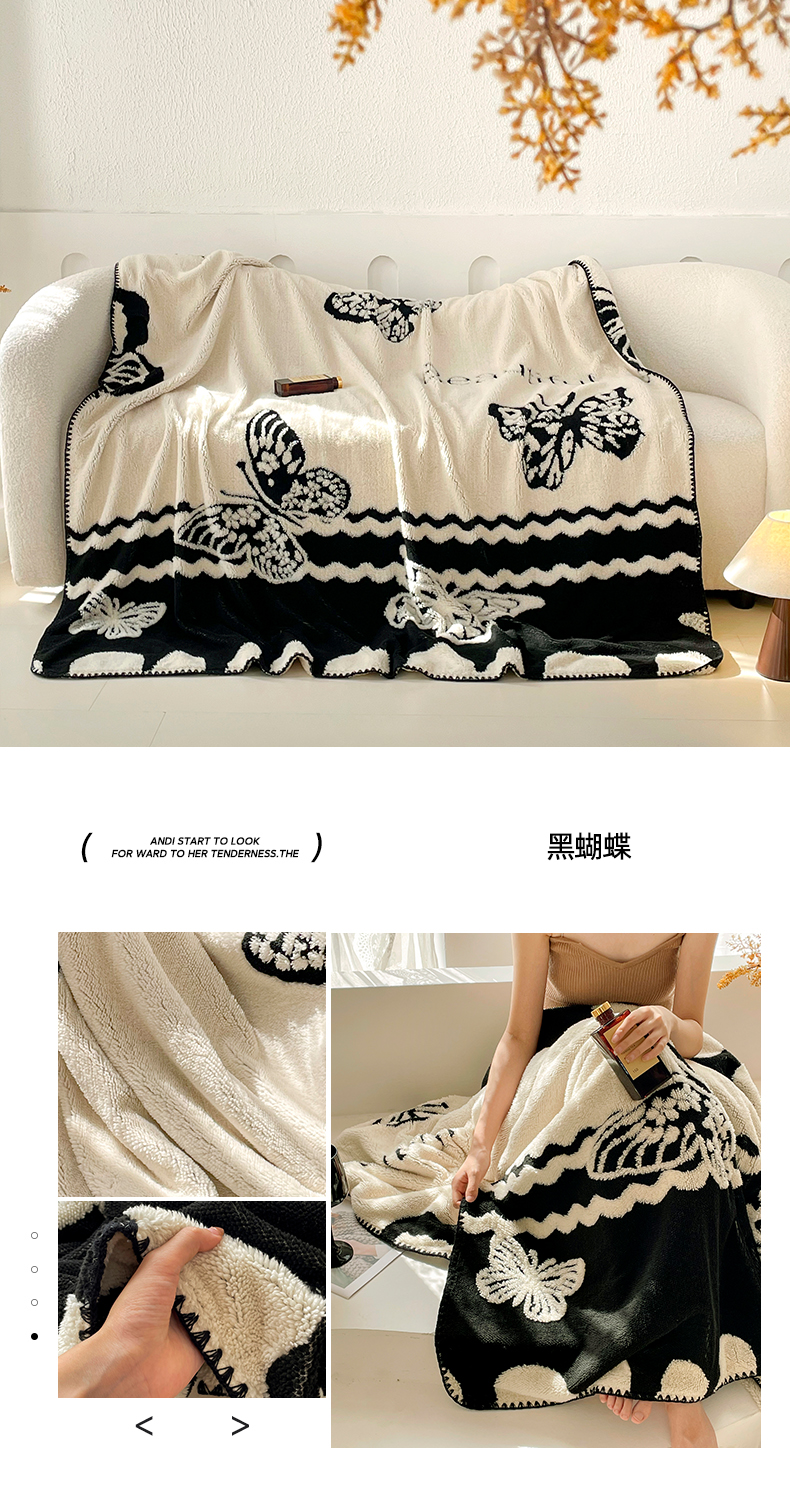 (总)晚爱家纺(原晚安家居) 2025新款跨境多功能盖毯沙发毯双面印花舒棉绒毛毯,波浪纹,黑蝴蝶,蝴蝶树,节节高,山茶花,四叶草,小布布,小熊猫