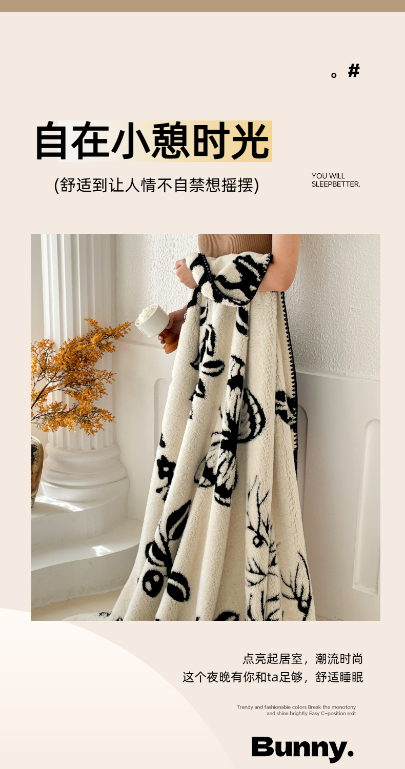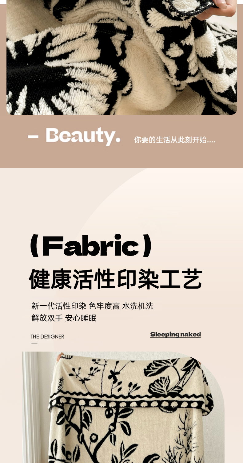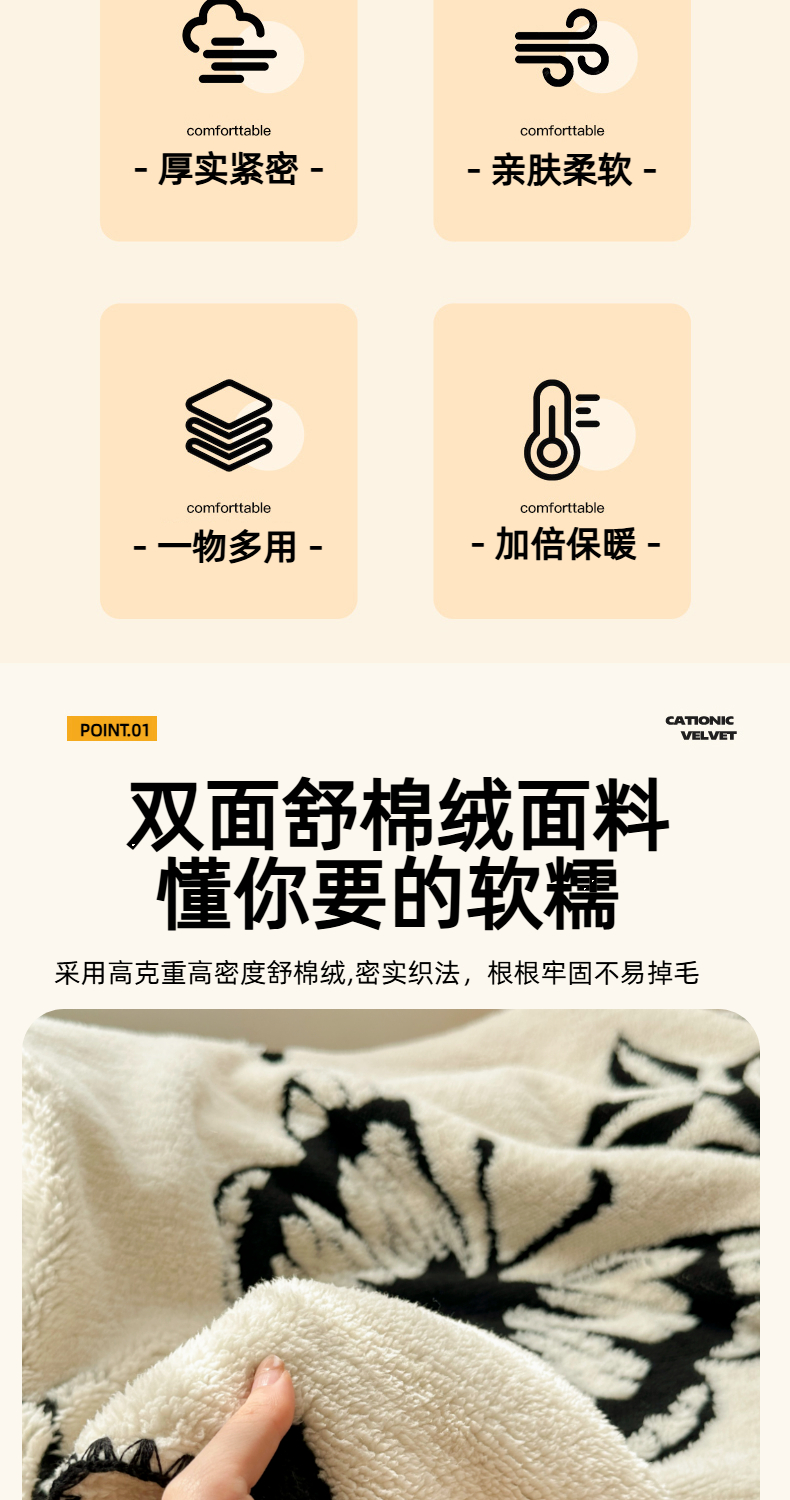 (总)晚爱家纺(原晚安家居) 2025新款跨境多功能盖毯沙发毯双面印花舒棉绒毛毯,波浪纹,黑蝴蝶,蝴蝶树,节节高,山茶花,四叶草,小布布,小熊猫