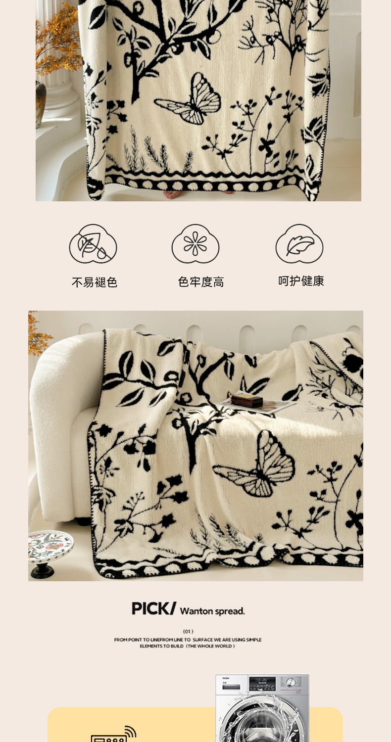 商品名称:晚爱家纺(原晚安家居) 2025新款跨境多功能盖毯沙发毯双面印花舒棉绒毛毯 蝴蝶树