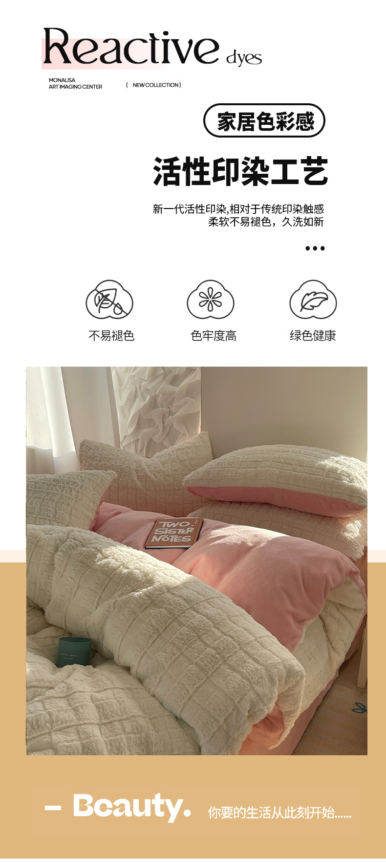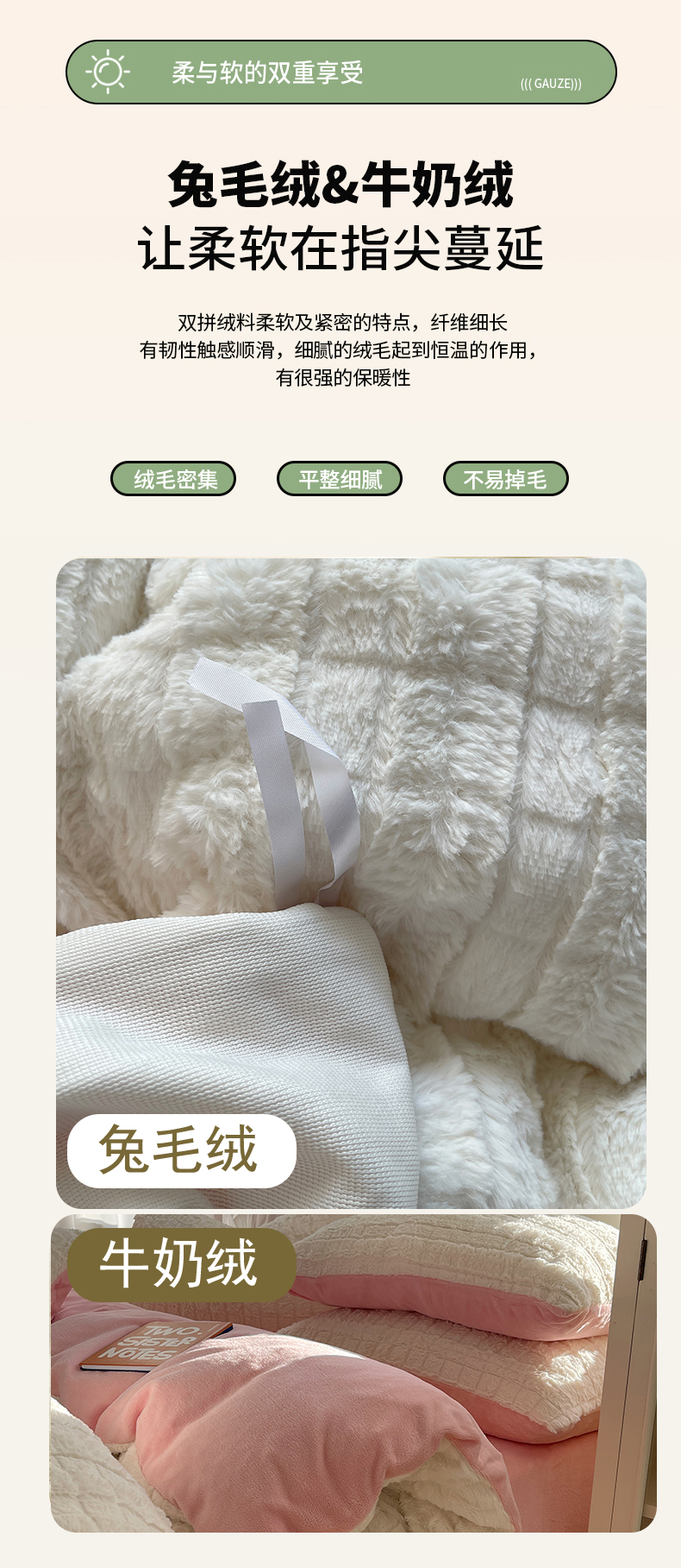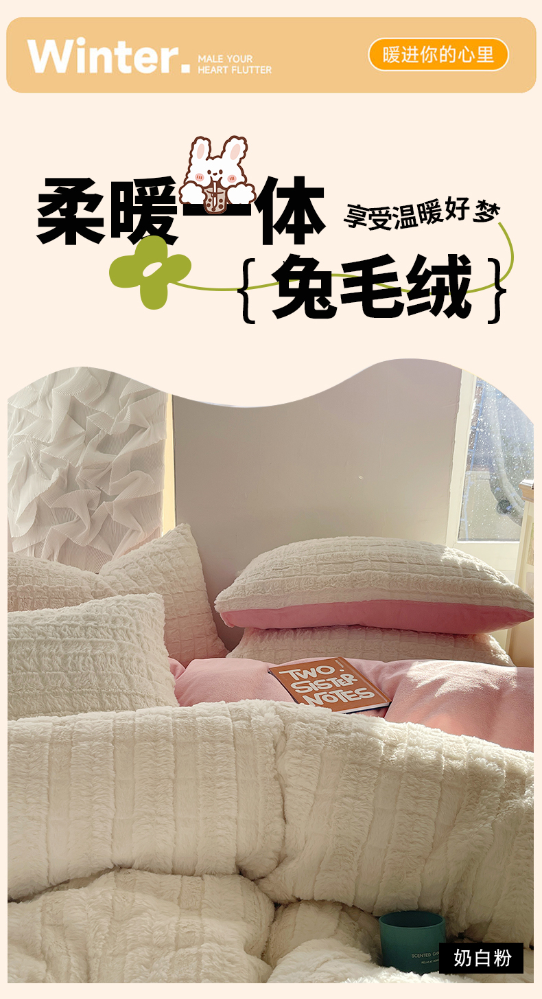 当前位置: 91家纺网 > 商品网购 > 床品套件 > 四件套 > 牛奶绒四件套 > 金爱家 2025新款全消光牛奶绒A类纯色獭兔毛绒立体牛奶绒四件套 奶白粉