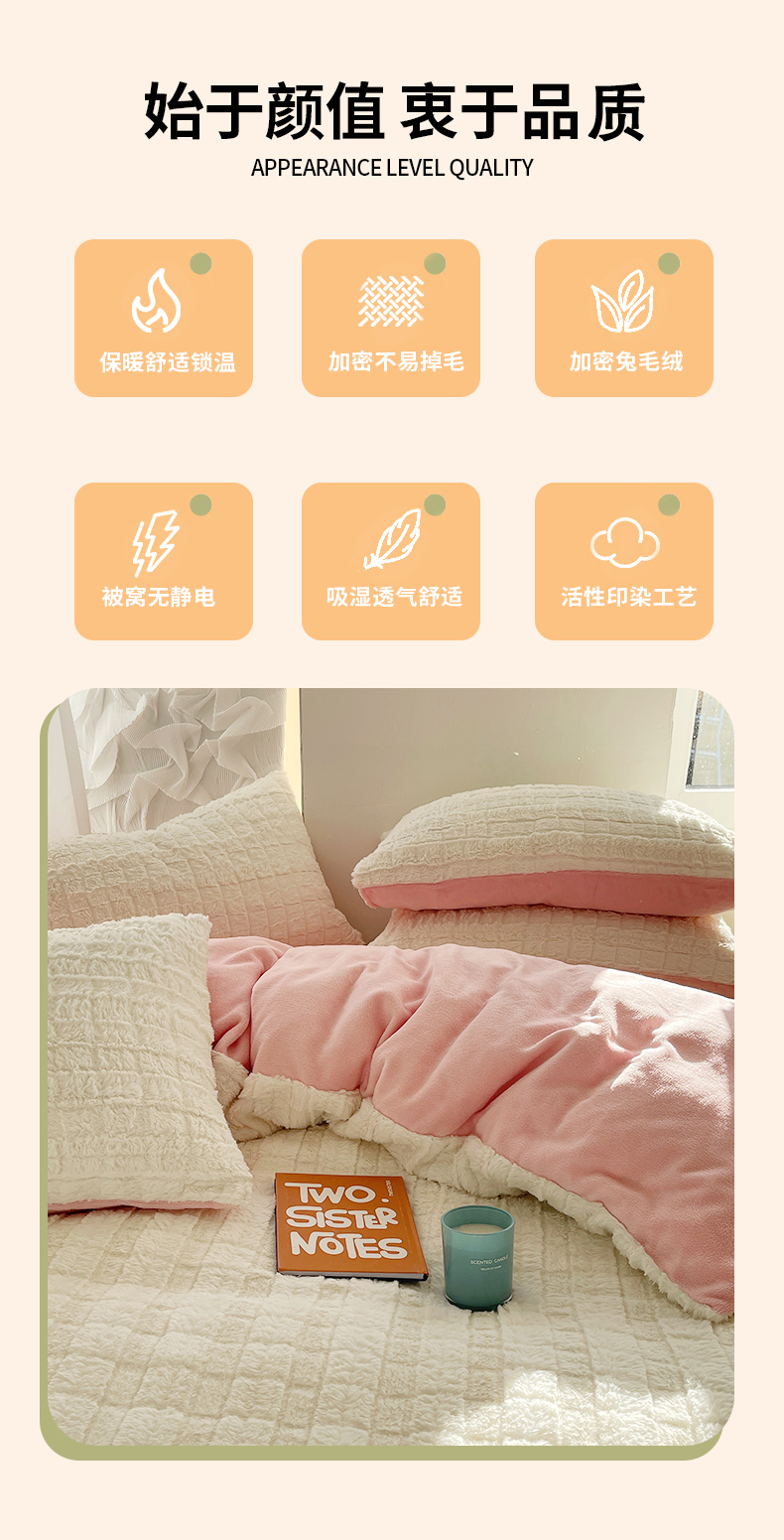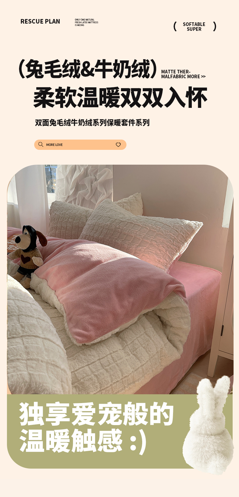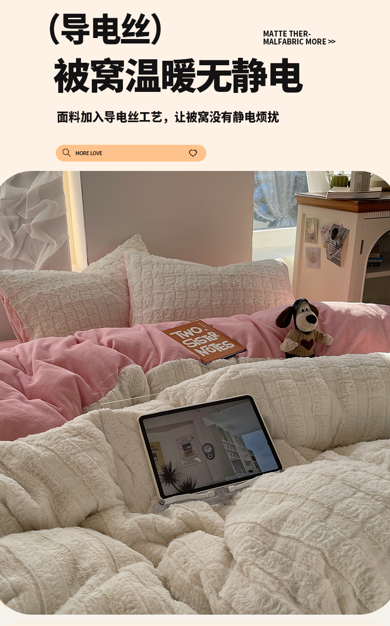 当前位置: 91家纺网 > 商品网购 > 床品套件 > 四件套 > 牛奶绒四件套 > 金爱家 2025新款全消光牛奶绒A类纯色獭兔毛绒立体牛奶绒四件套 奶白粉