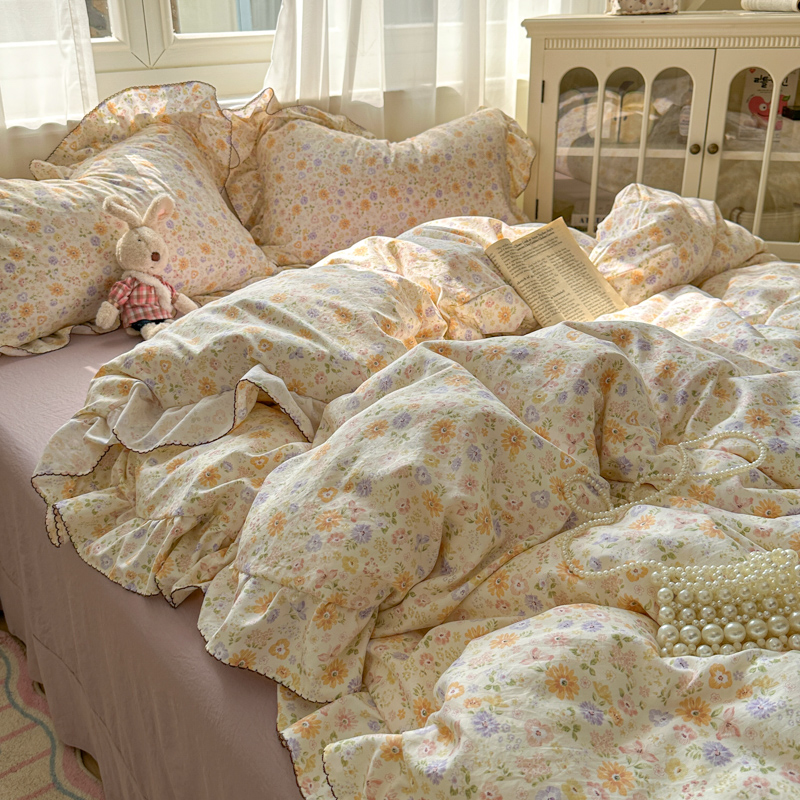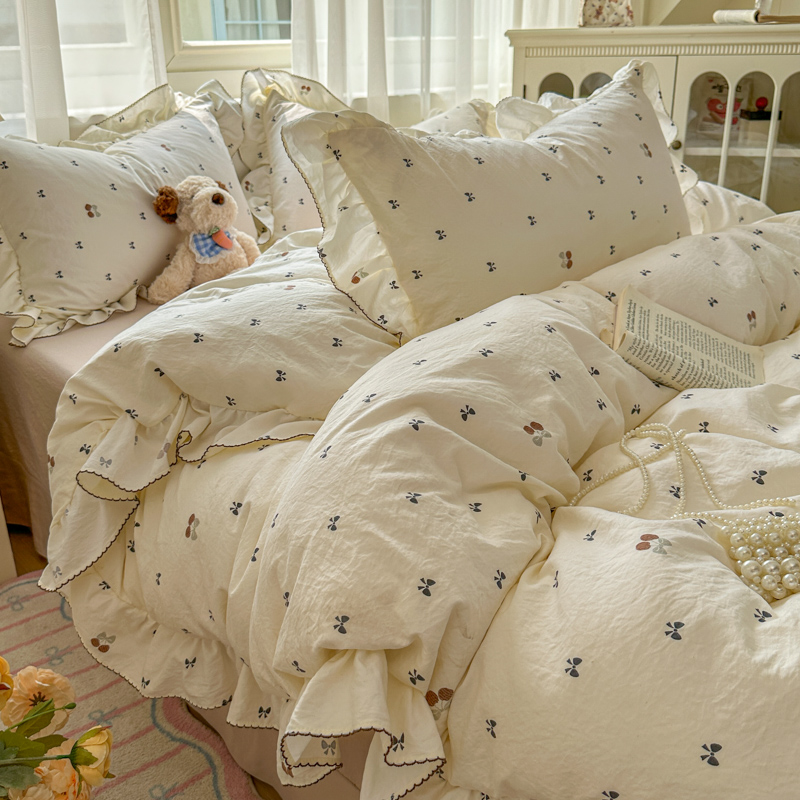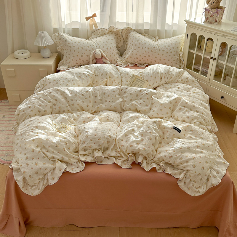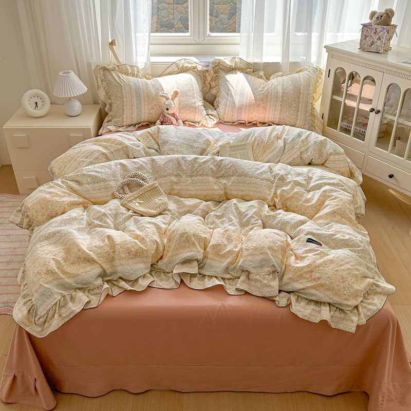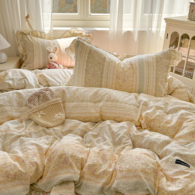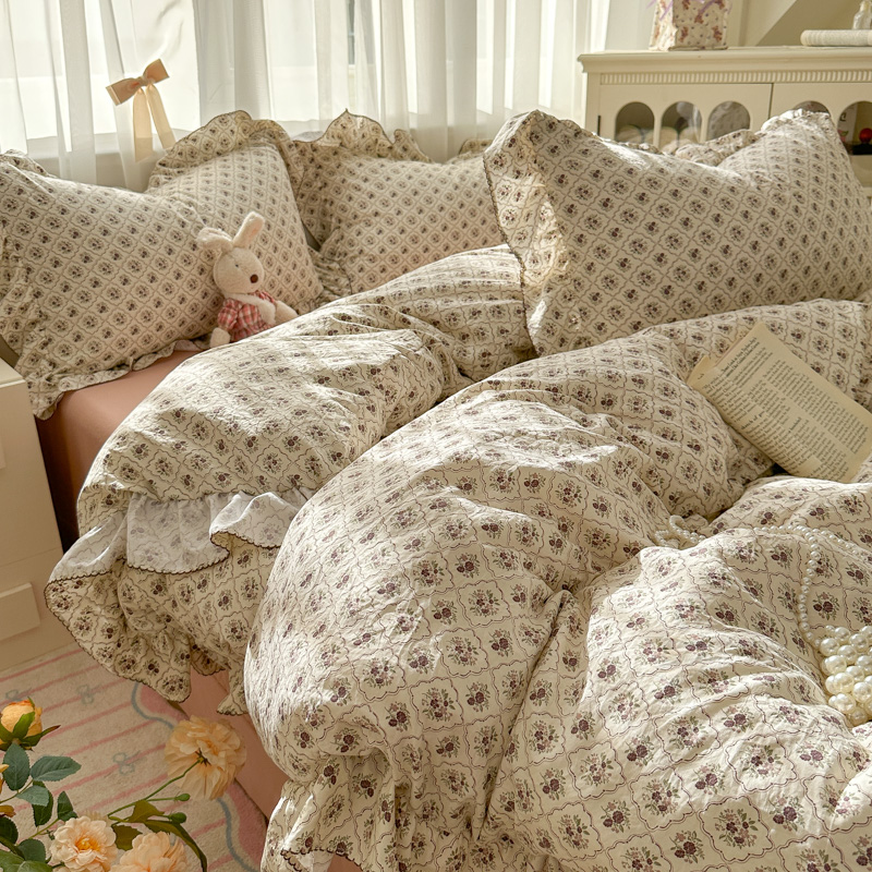 (总)欧尚 2026新款花边床盖四件套,春和,花束,花野,灰樱桃,咖爱心,咖豹纹,咖啡小猫,梨花落,绿爱心,梦境,木马,奶油波点,暖橘枝,暖心,人间草木,田园兔,小女孩,星愿,摇摇马,紫爱心,紫豹纹,紫苏