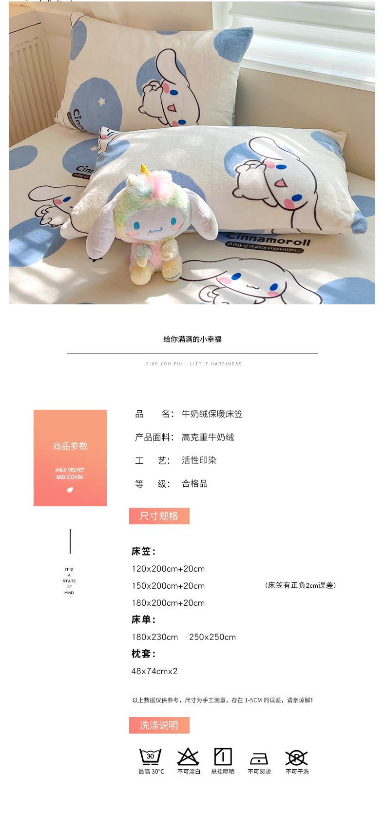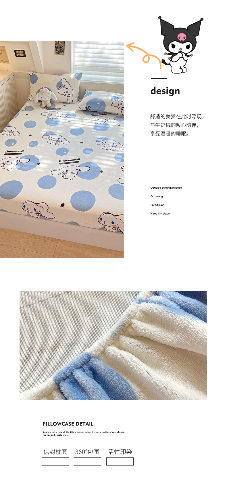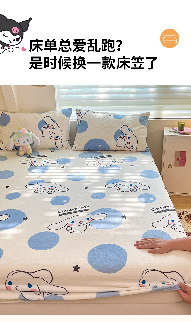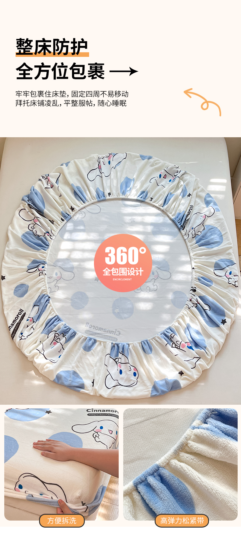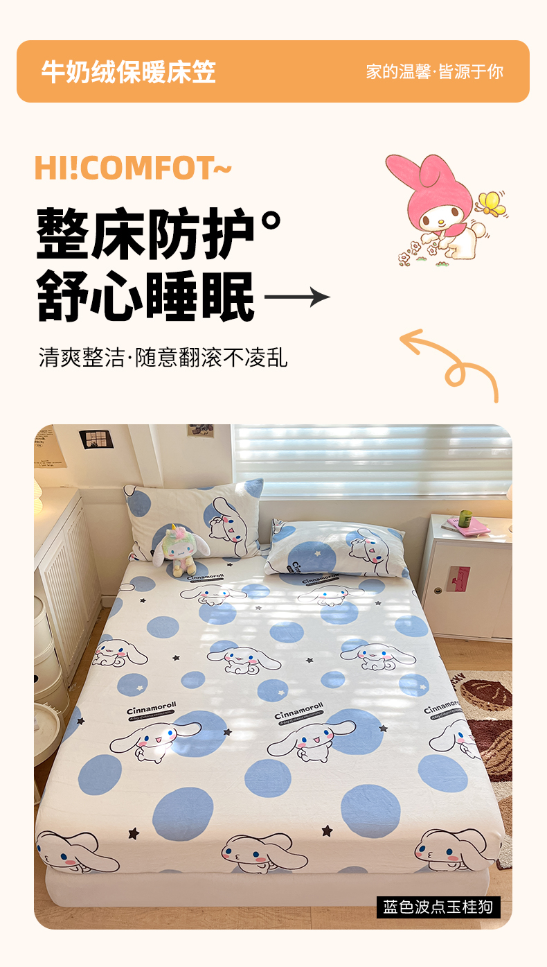 金爱家 2025新款三丽鸥牛奶绒单品系列床单床笠单件 绒-X蓝色波点玉桂狗