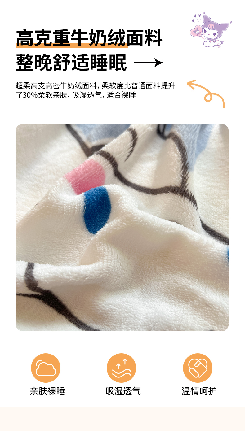 • 91家纺网 家纺一手货源 找家纺 金爱家 2025新款三丽鸥牛奶绒单品系列床单床笠单件 绒-X蓝色波点玉桂狗