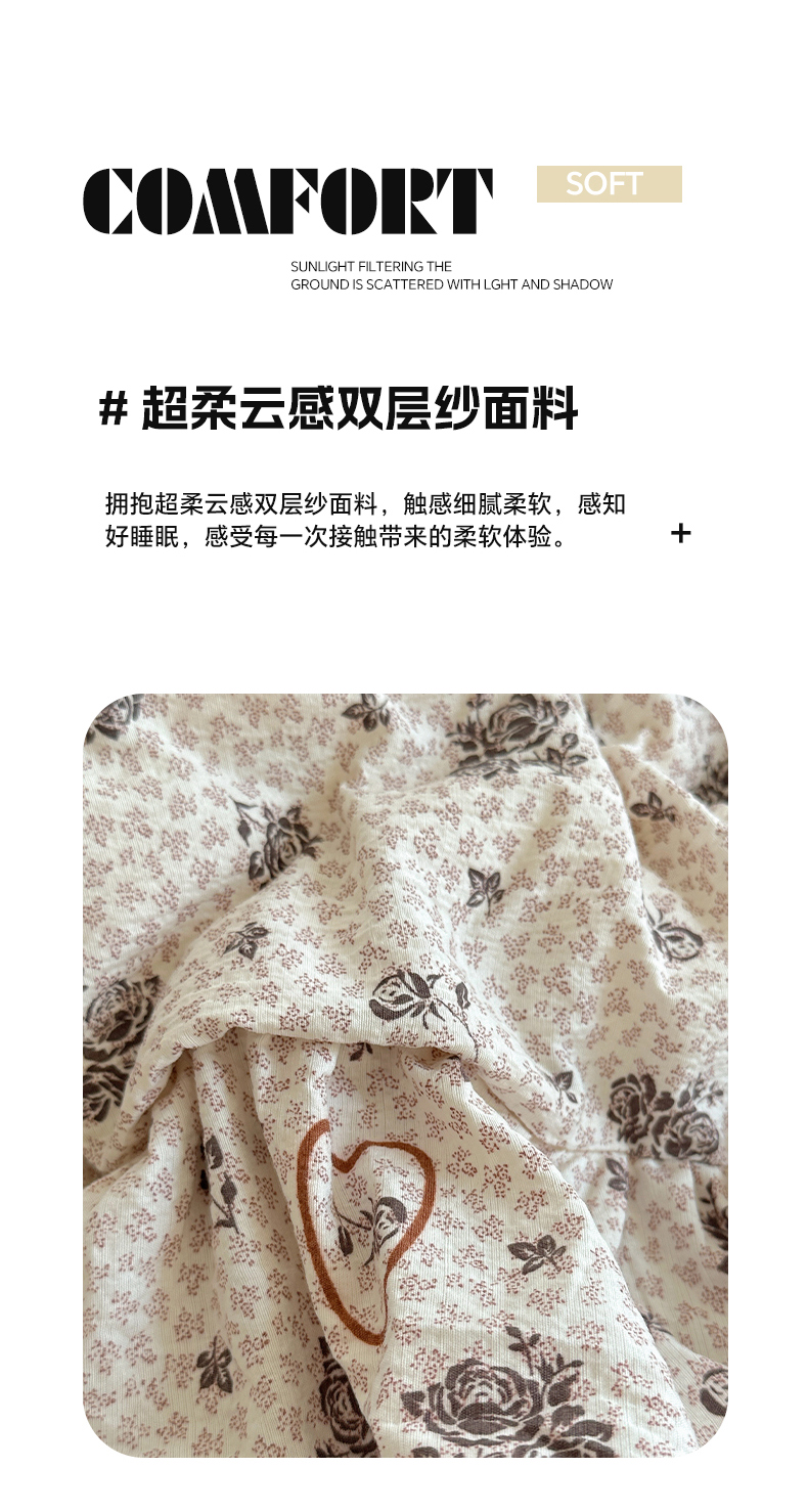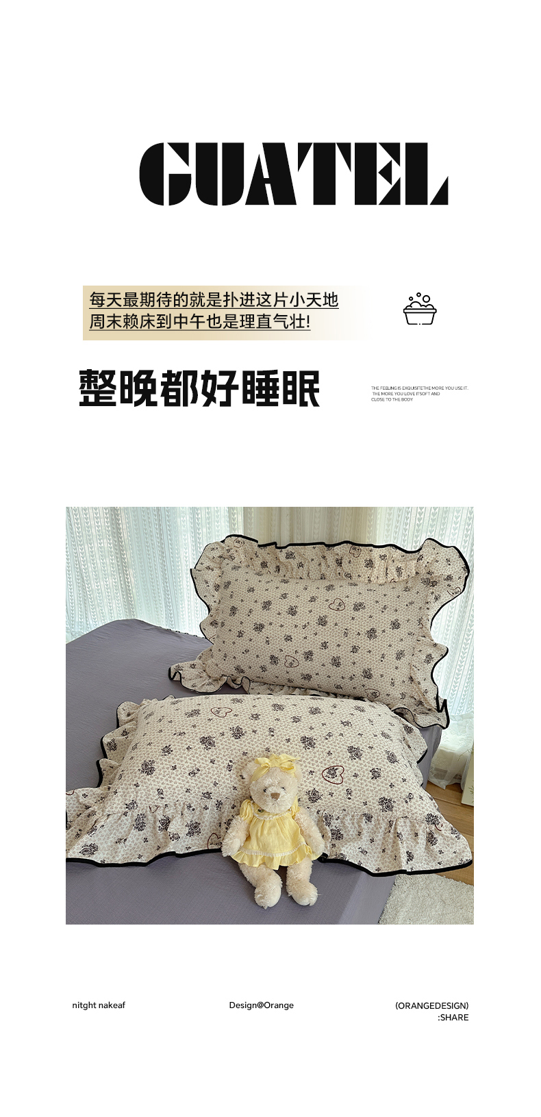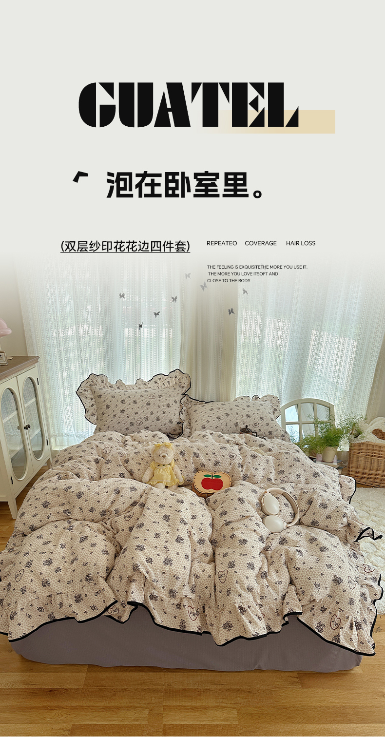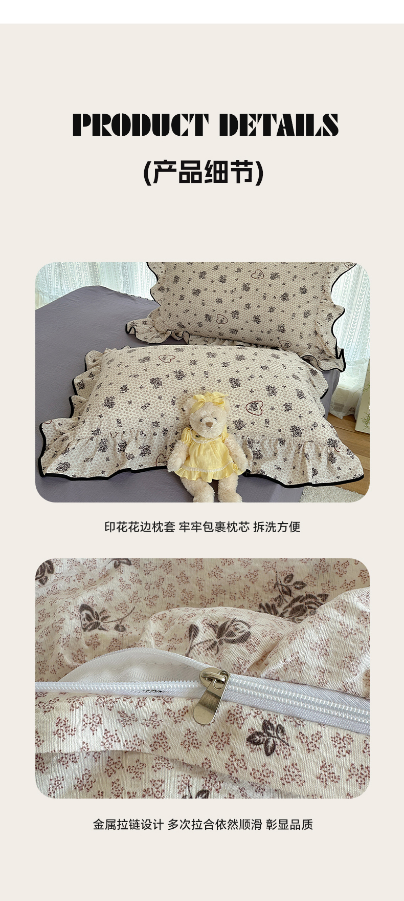 商品名称:红嘴企鹅 2025新款韩版双拼花边四件套 韩版-素影玫心