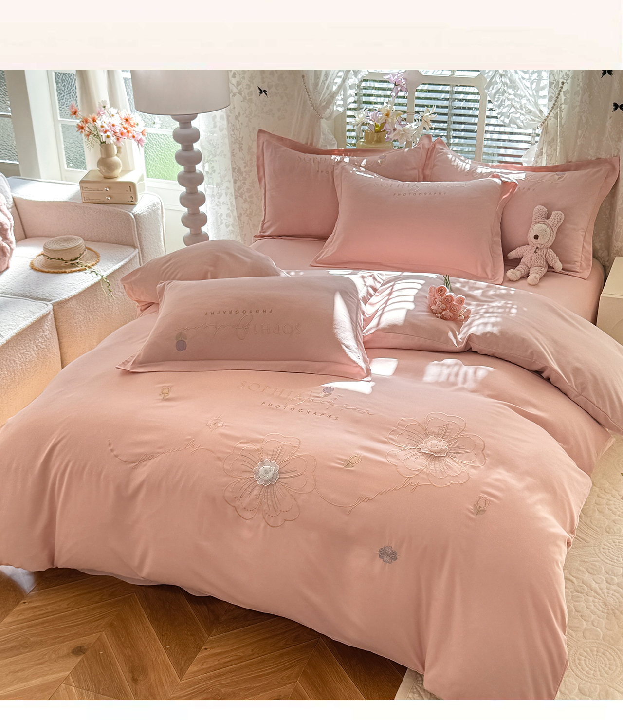 当前位置: 91家纺网 > 商品网购 > 床品套件 > 四件套 > 其它四件套 > 大麦乐田 2025新款小清新糯小棉立体花绣花吊边四件套 清新恋人-粉玉