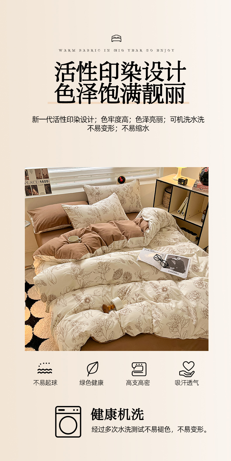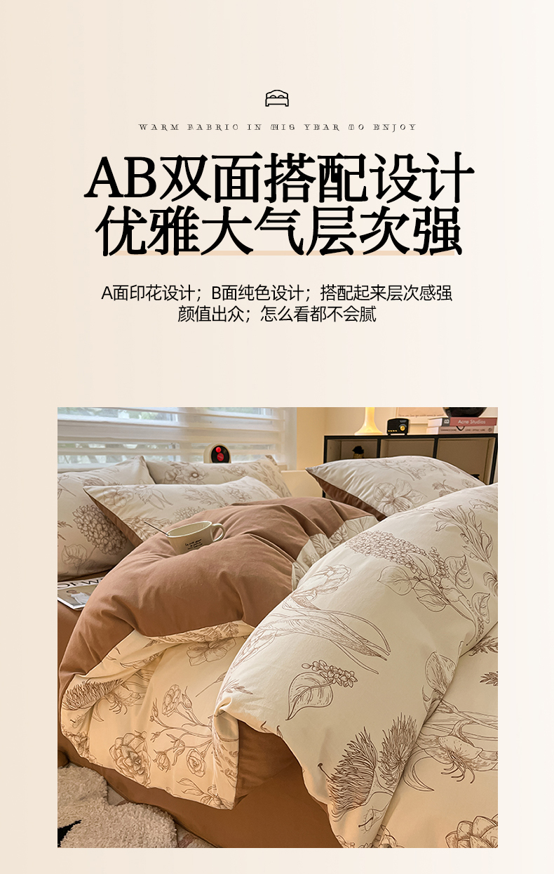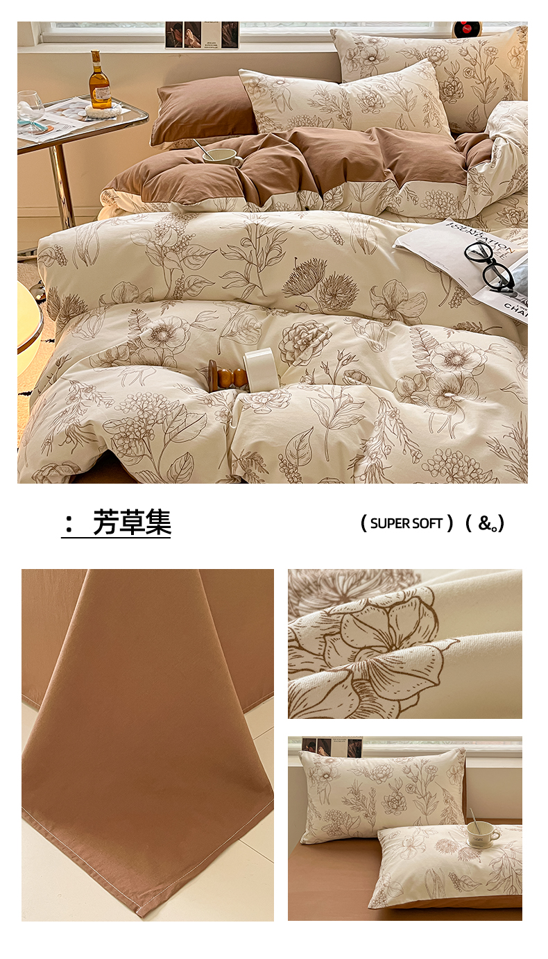 当前位置: 91家纺网 > 商品网购 > 床品套件 > 四件套 > 全棉普通四件套 > 吉象家纺 2025新款全棉纯棉加厚磨毛印花四件套 芳草集